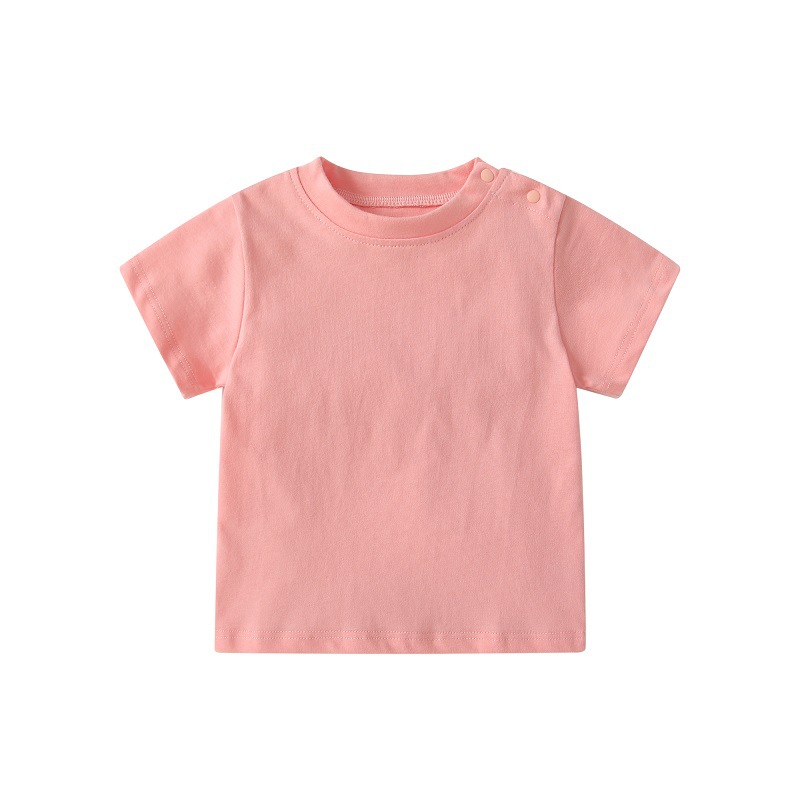 유아 여름 어깨 버클 티셔츠 어린이 단색 면 티셔츠 반소매 옷 아기의 반 소매 기본 셔츠 위 옷