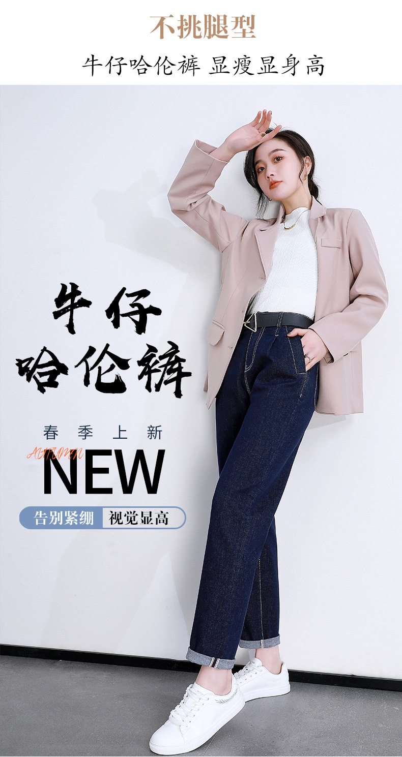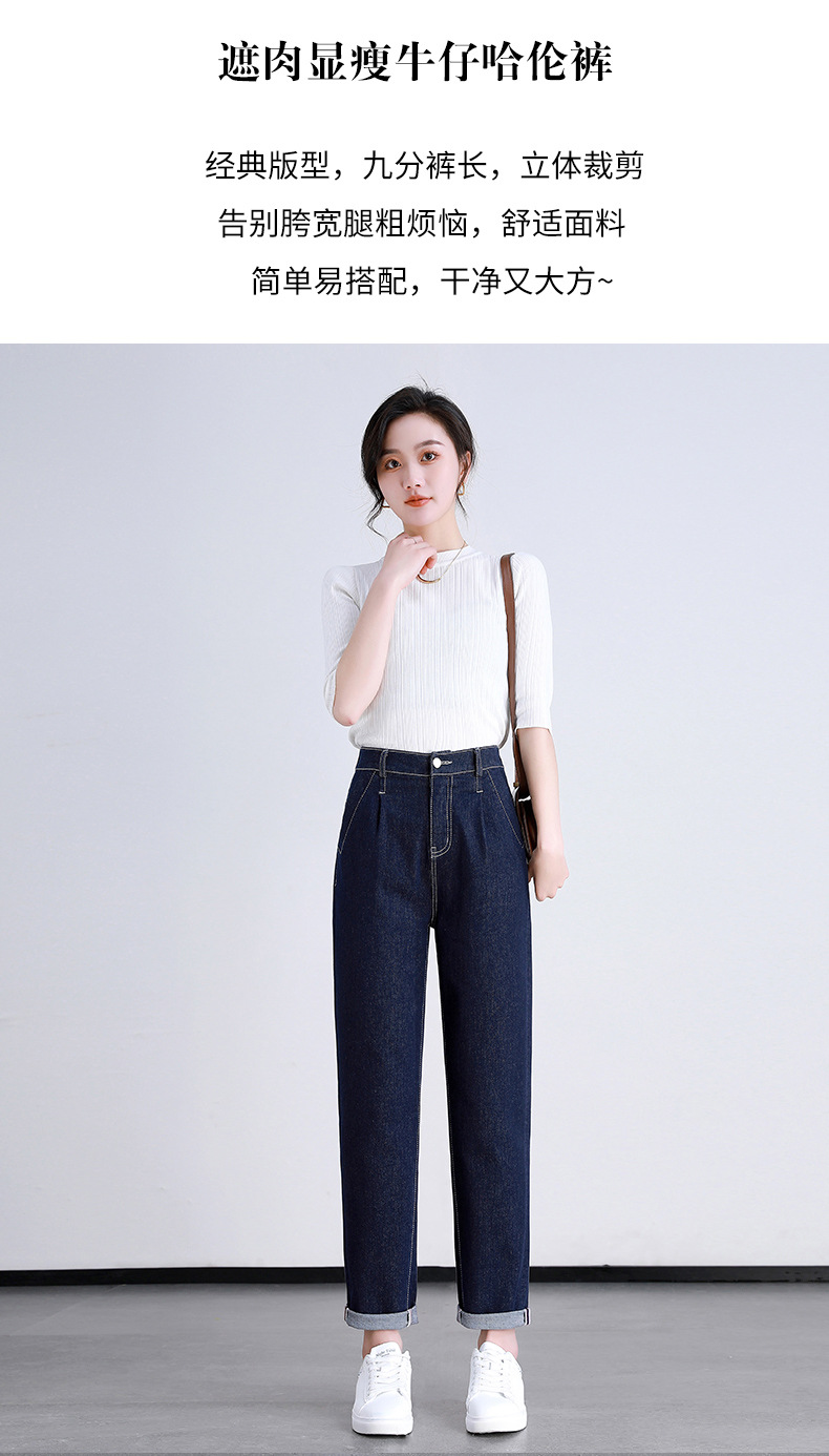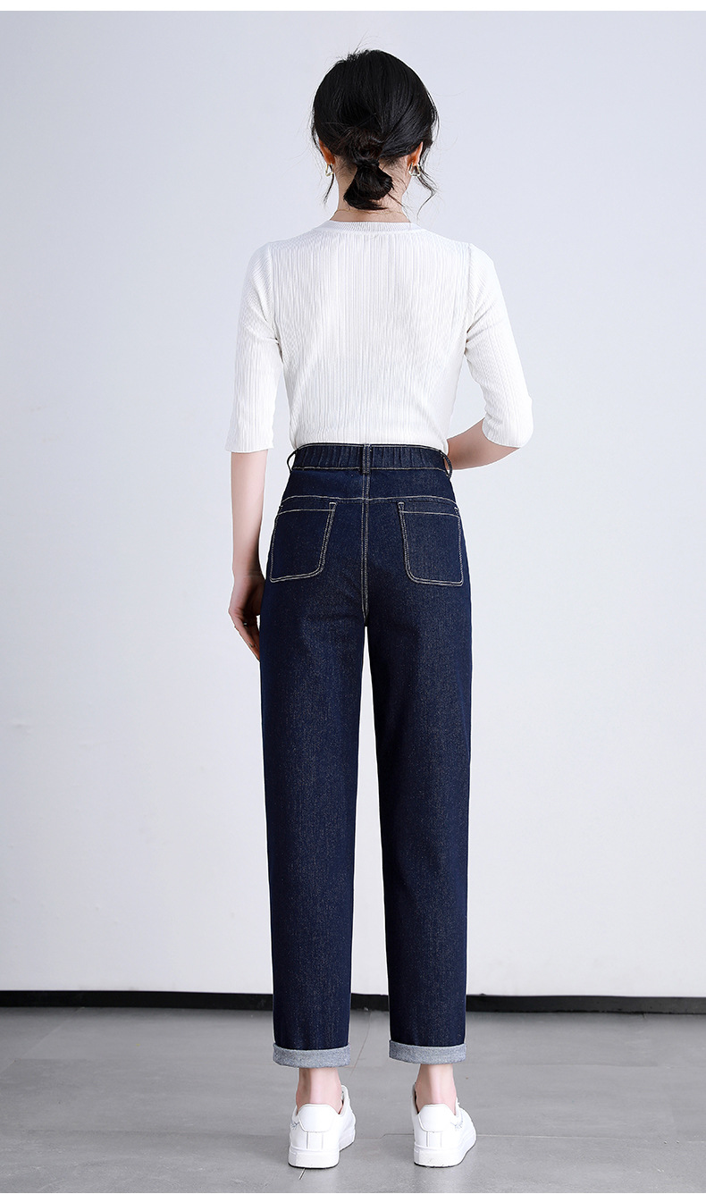 여성 바지 2024 새로운 봄 탄성 높은 허리 데님 스트레치 소프트 크롭 하렘 청바지스토어 가기