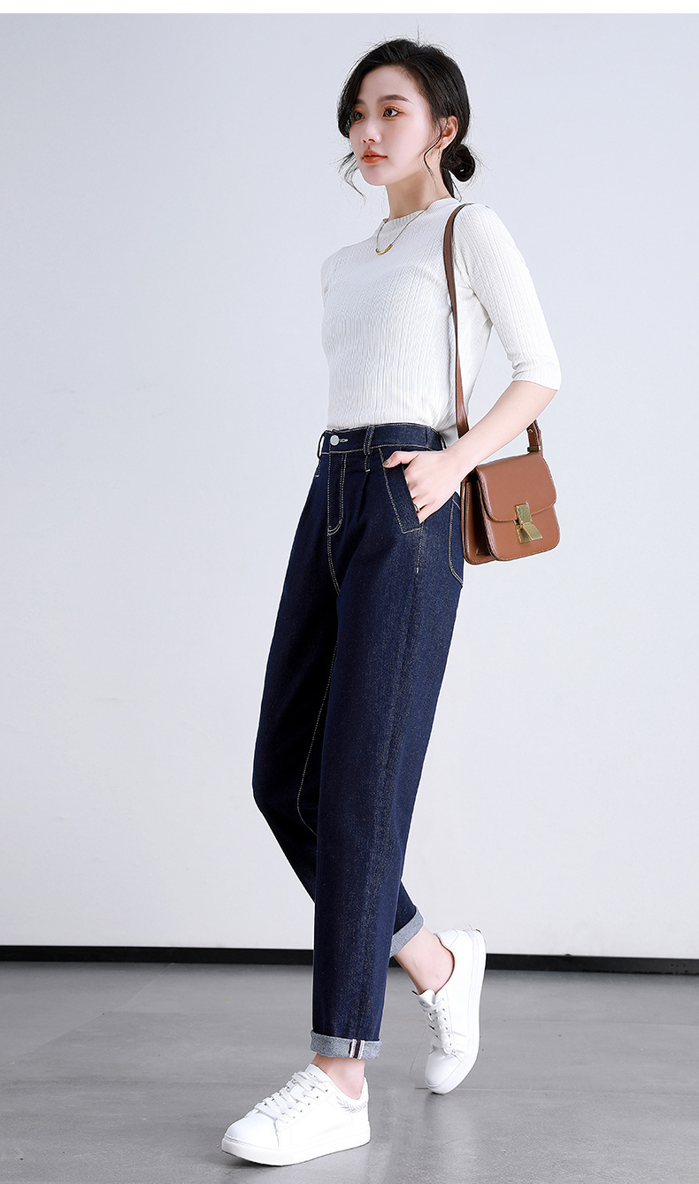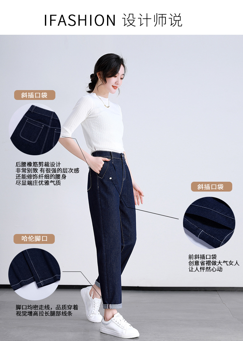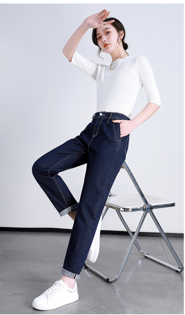 여성 바지 2024 새로운 봄 탄성 높은 허리 데님 스트레치 소프트 크롭 하렘 청바지스토어 가기