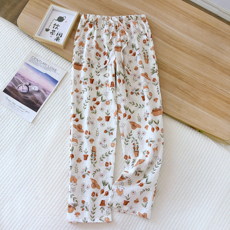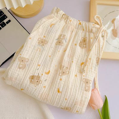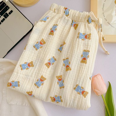 봄과 가을 여성의 더블 거즈 파자마 바지 일본식 플러스 사이즈 바지 여름 여성용 크레이프 모기 방지 홈 바지스토어 가기