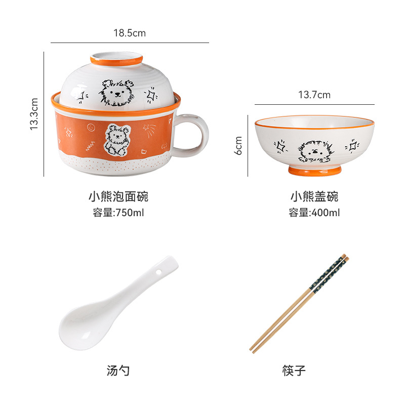 뚜껑이있는 인스턴트 국수 그릇 세라믹 일본식 손잡이 쌀 그릇 도시락 그릇 기숙사 학생을위한 젓가락 수프 그릇과 귀여운 만화