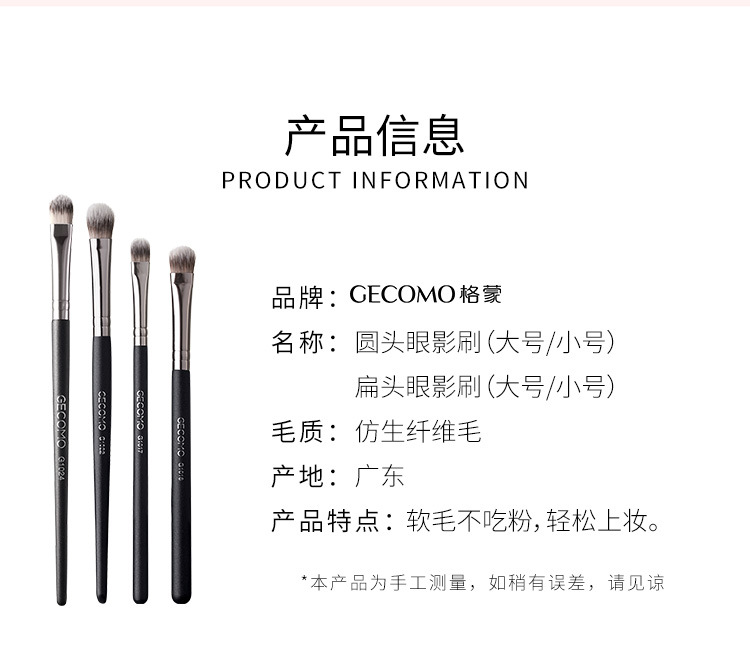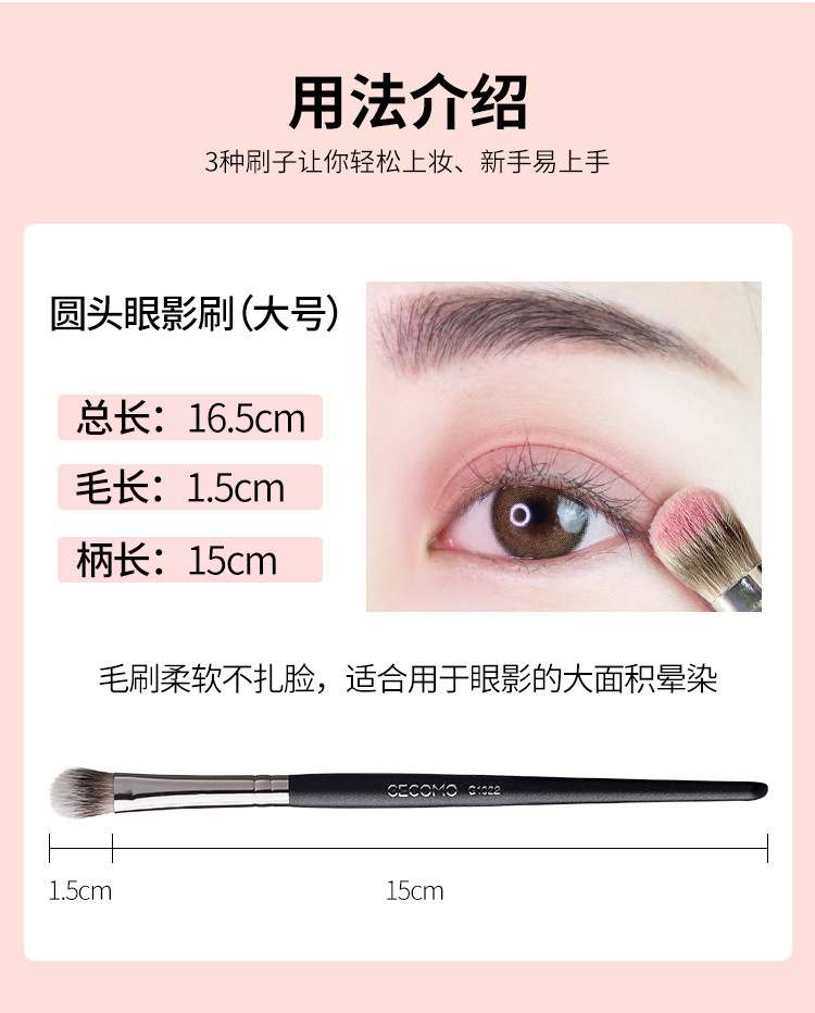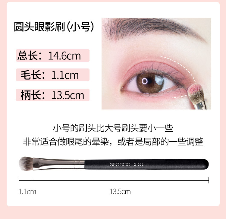 GECOMO 라운드 헤드 플랫 헤드 아이 섀도우 브러시는 파우더를 먹지 않습니다 부드러운 헤어 브러시 헤드 메이크업 브러쉬 초보자 눈 화장 미용 메이크업 도구 사용자 정의