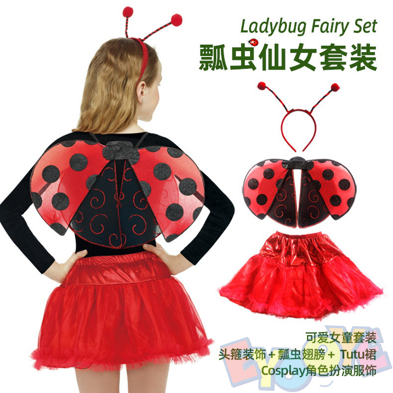 어린이날 무당벌레 날개 TUTU 스커트 세트 무대 공연 소품 무당벌레 요정 세트