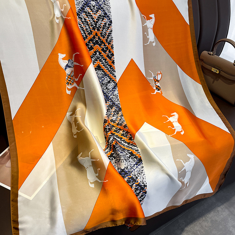 봄 케이프 말 오렌지 쌀 커피 색상 일치 모조 실크 긴 수건 유행 외부 숄 에어컨 비치 타올 여성