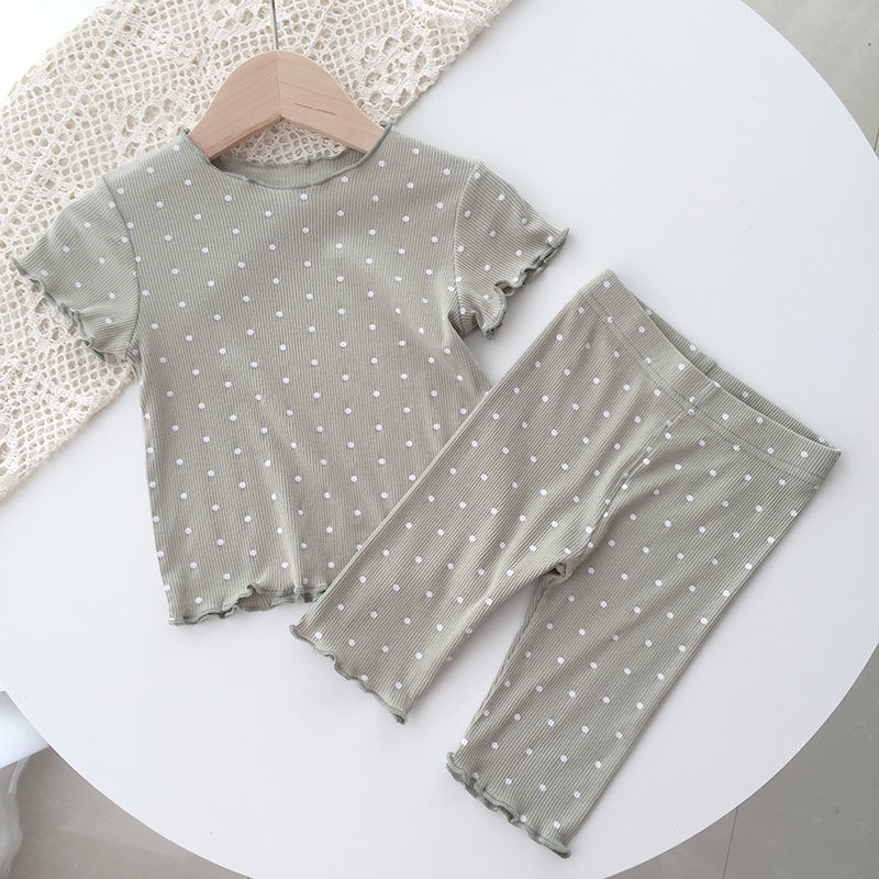 아기의 잠옷 여름 얇은 세트 도트 웨스턴 스타일 여아 여름 투피스 홈 의류 여성용 어린이 에어컨 의류스토어 가기