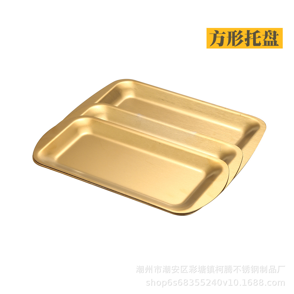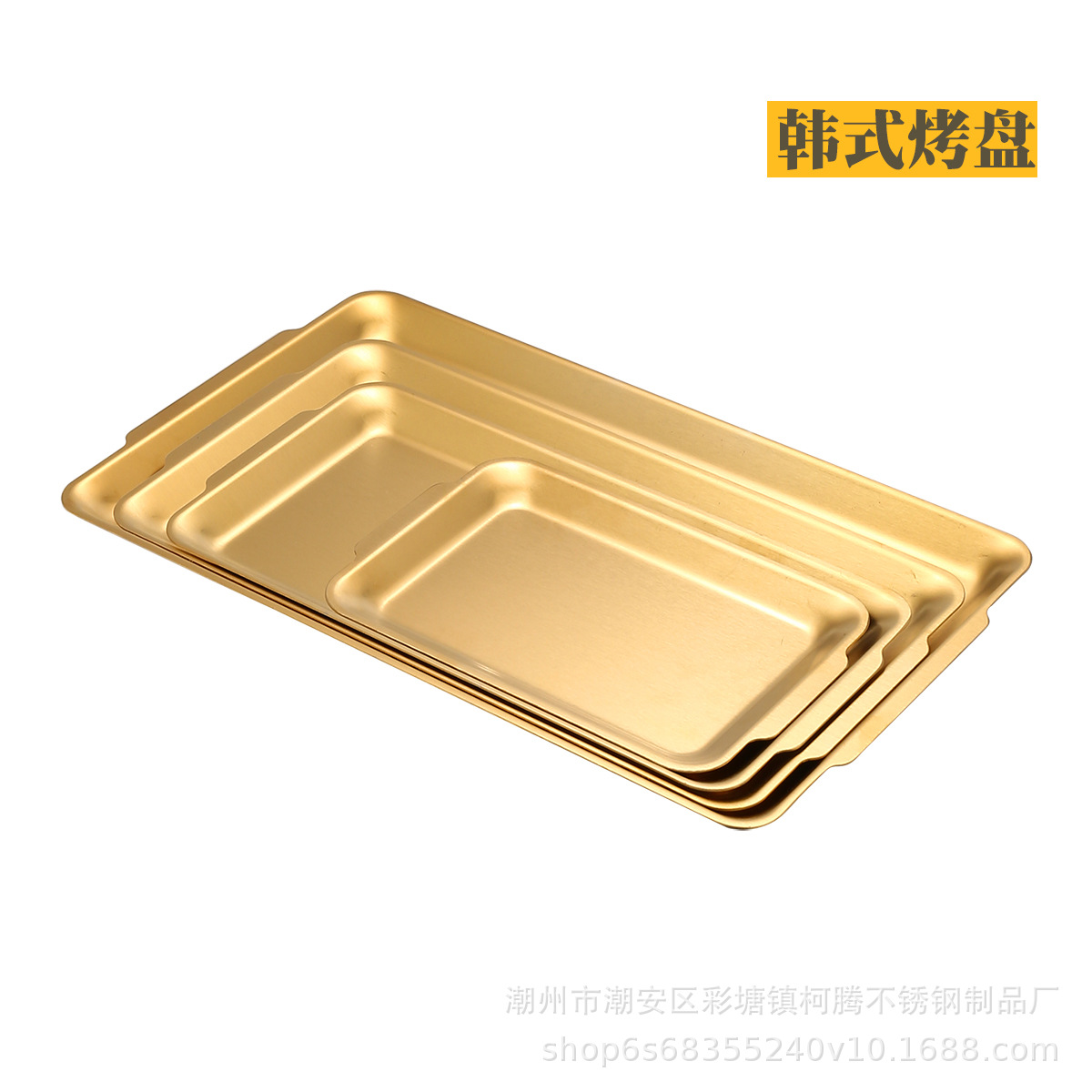 304 스테인레스 스틸 한국식 바베큐 접시 황금 직사각형 접시 디너 플레이트 냄비 바베큐 뷔페 트레이