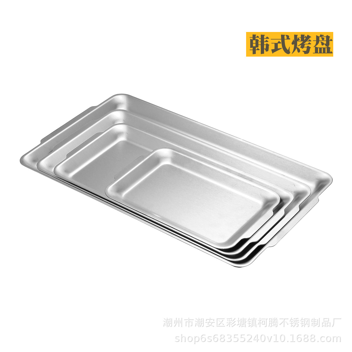 304 스테인레스 스틸 한국식 바베큐 접시 황금 직사각형 접시 디너 플레이트 냄비 바베큐 뷔페 트레이스토어 가기