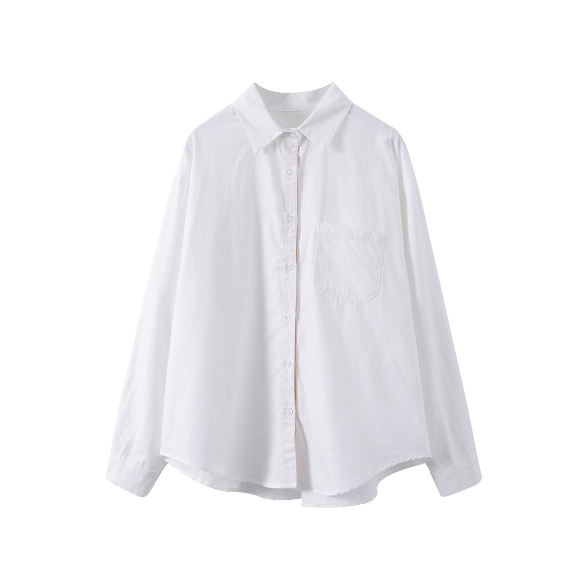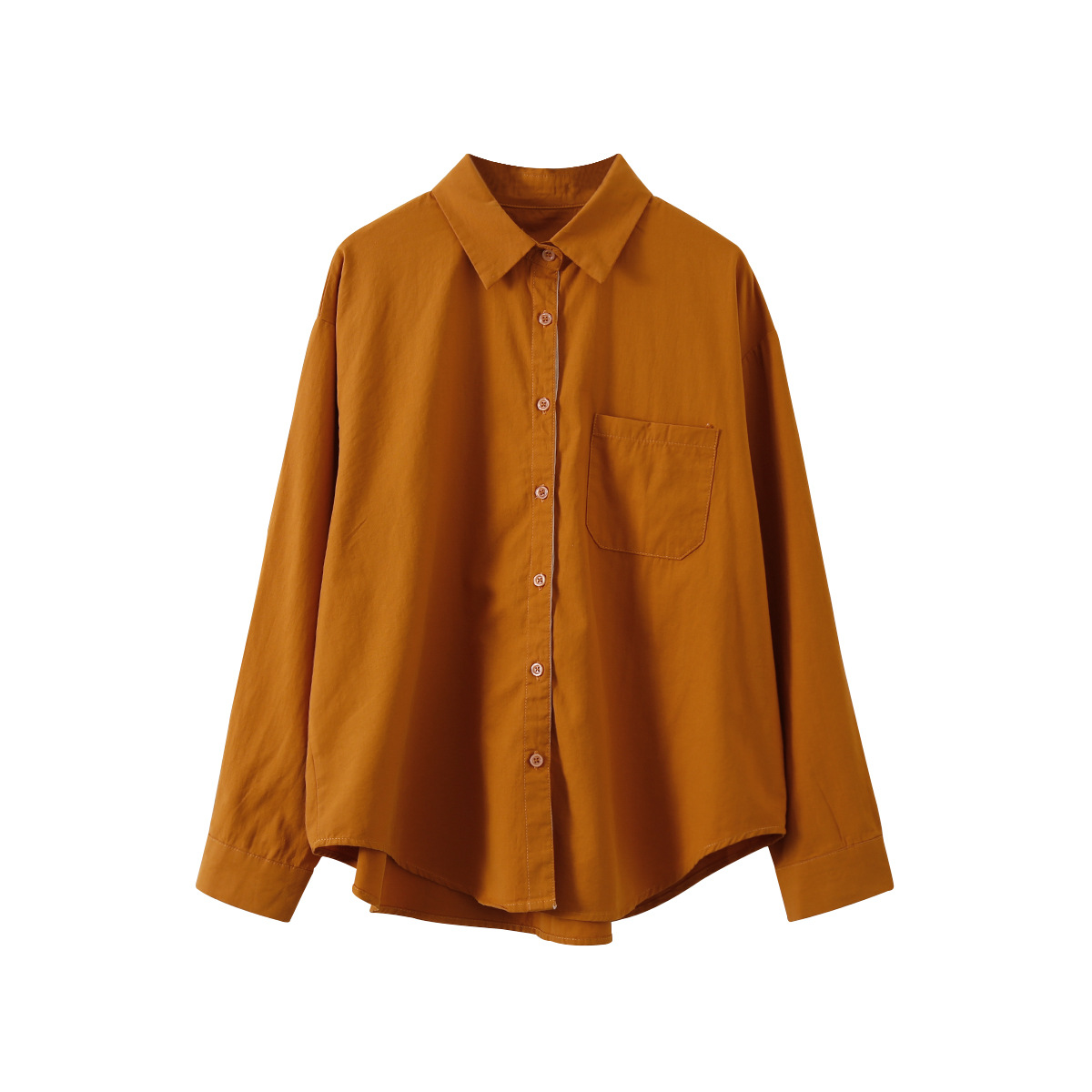 [오우판] 여성용 프렌치 배색 스플라이스 긴팔 셔츠 2025 신상 이너웨어 아우터 중간기장 탑 8526