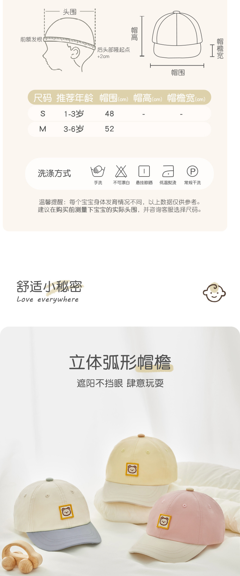 • S 모자 둘레 48cm (권장 연령: 1-3세)