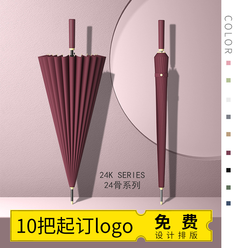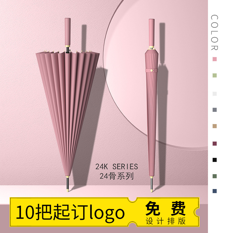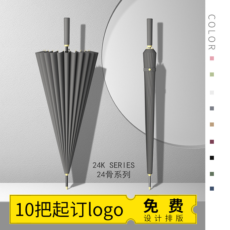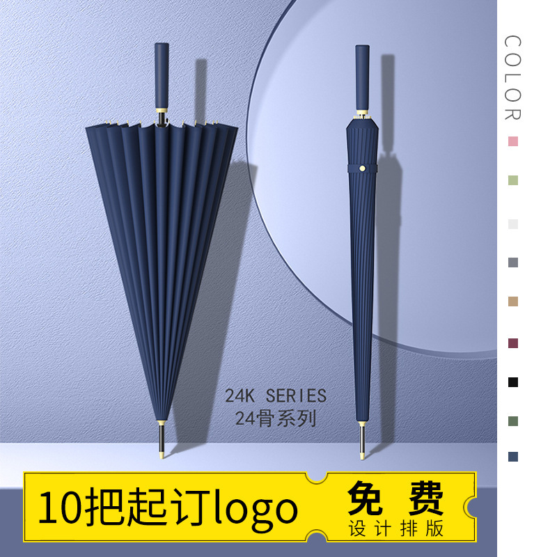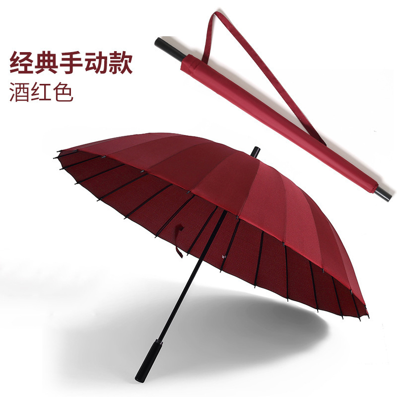 테무 인기상품 24본 긴 손잡이 우산 대형 이인용 강화 방풍 삼인용 직립형 우산 도매 맞춤형 로고