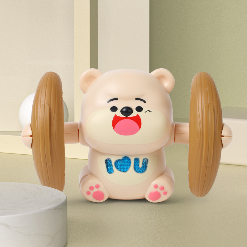 智电动声控灯光音乐翻斗猴婴幼儿学抬头爬行小熊地摊玩具