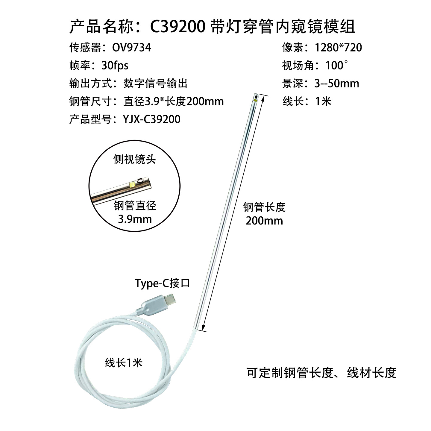 此链接为加工链接,可选配各种内窥镜尺寸,像素,线长,管径等,如需加工成带线成品,请与业务经理充分沟通好后下单备注,感谢您的支持!