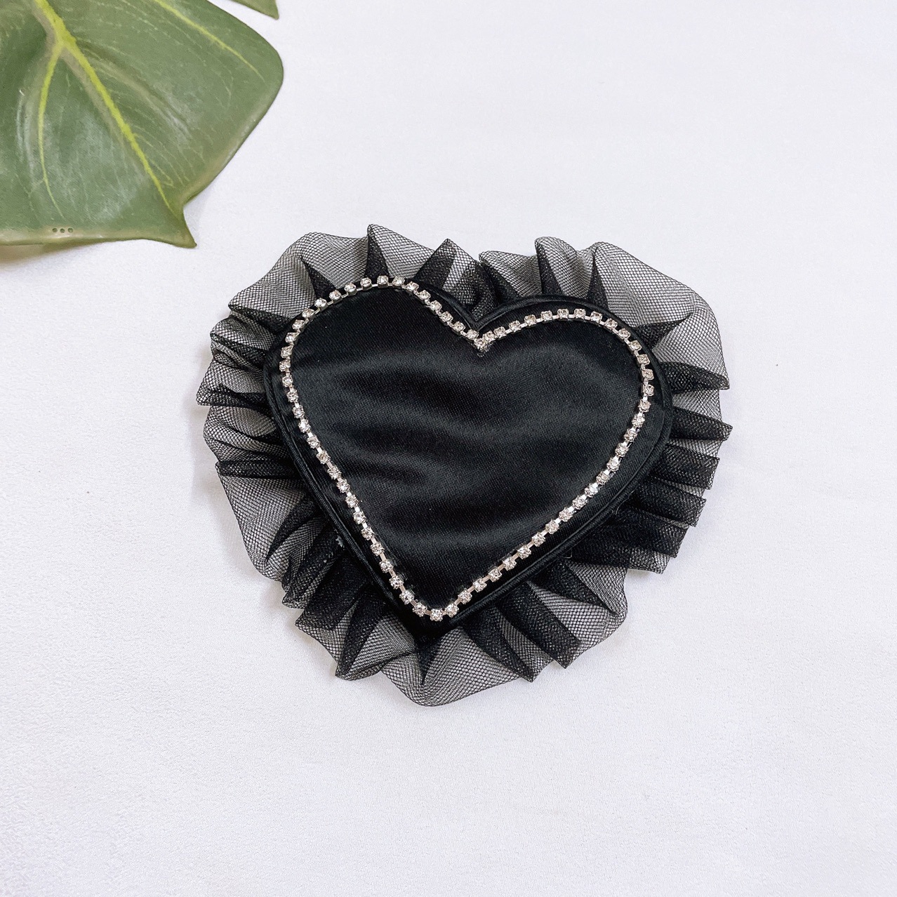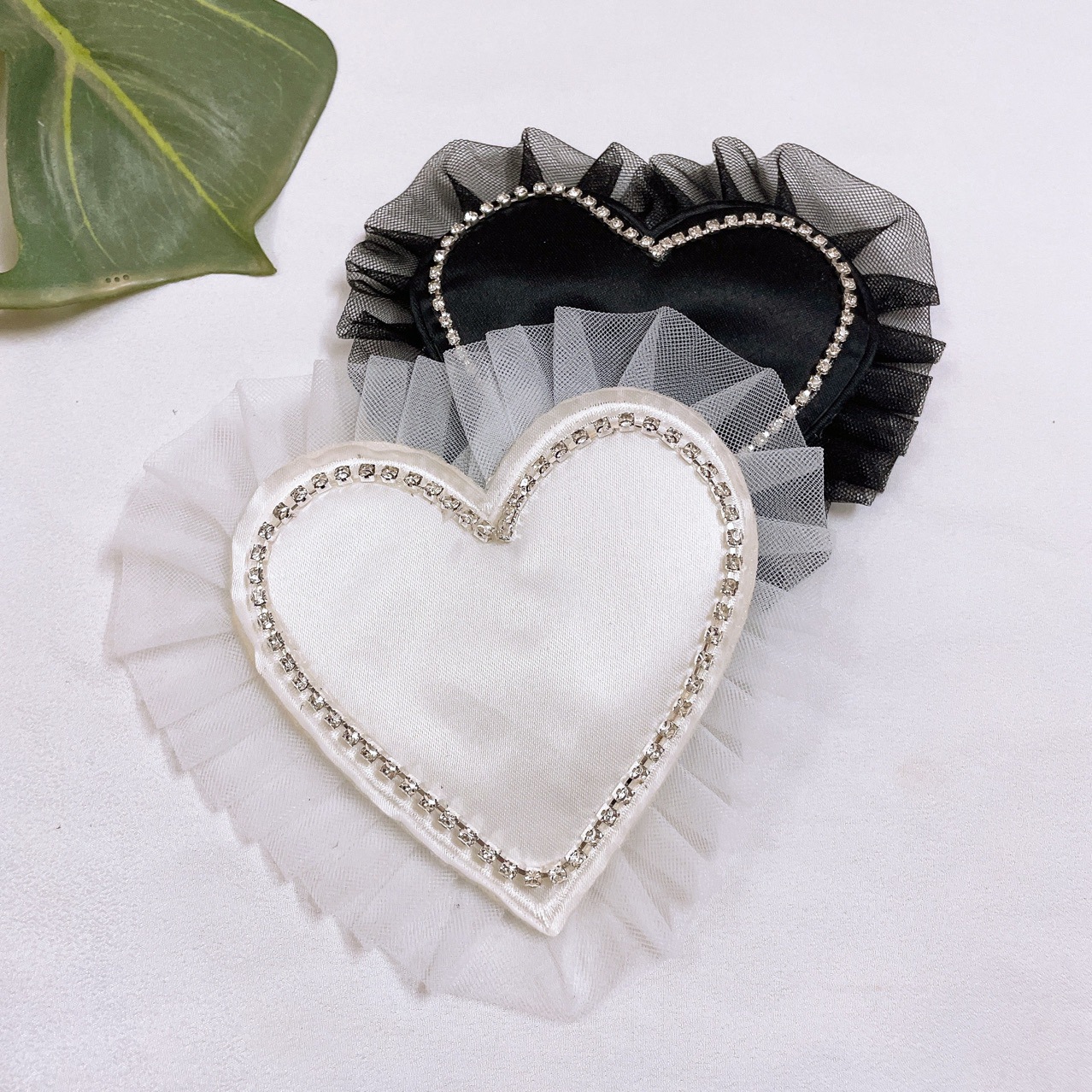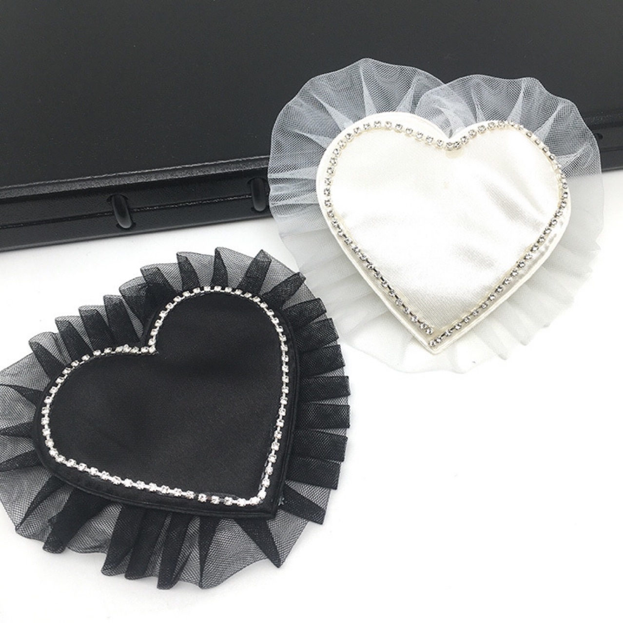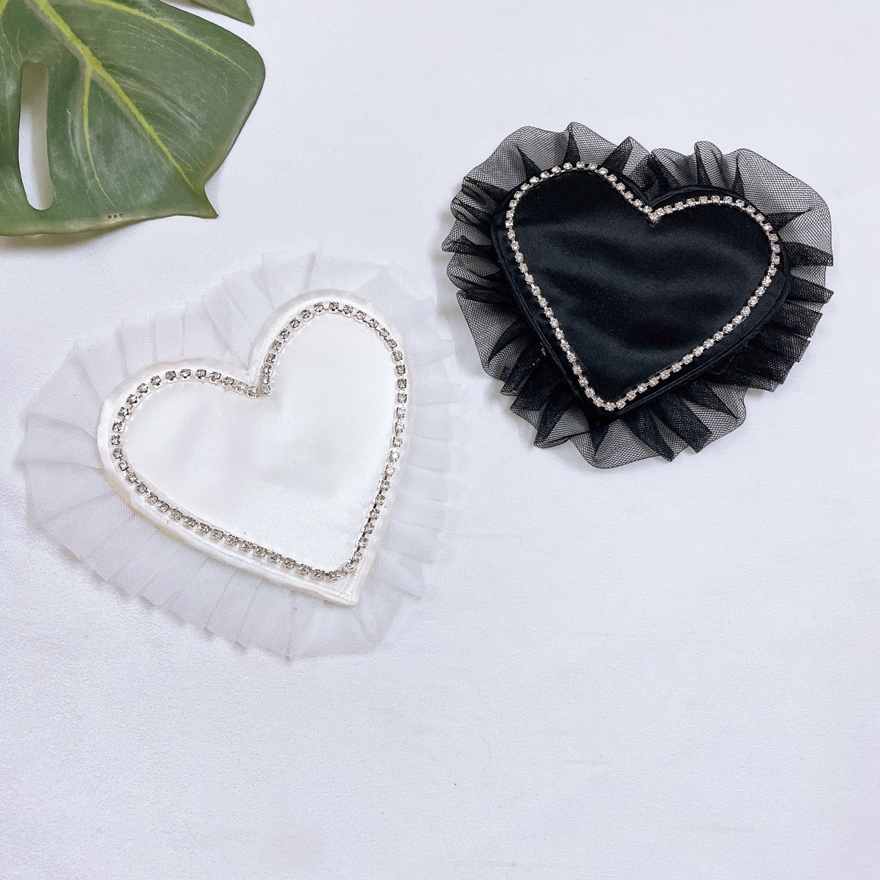새로운 주름 메쉬 가장자리 다이아몬드 체인 하트 모양의 사랑 천 스티커 작은 샤넬 스타일 원피스 패치 DIY 코사지 액세서리