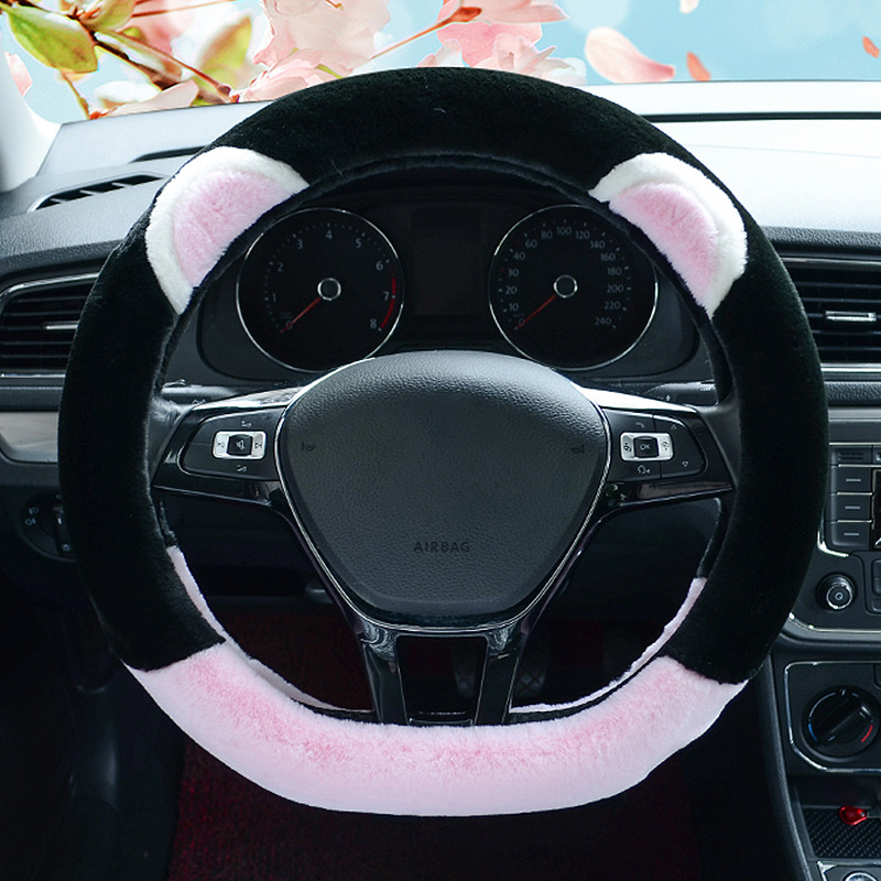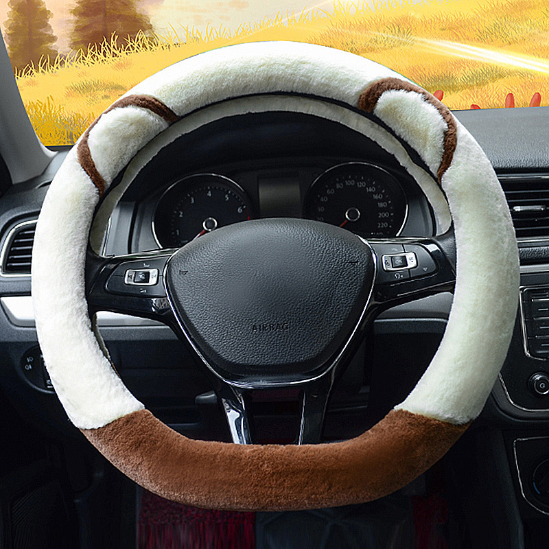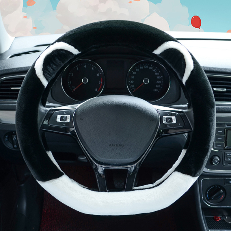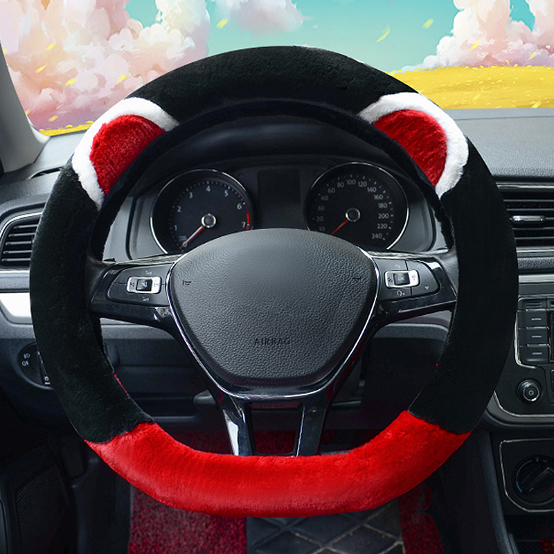 자동차 만화 스티어링 휠 커버 겨울 짧은 봉제 GM 핸들 커버 비 슬립 따뜻한 자동차 핸들 헤어스토어 가기