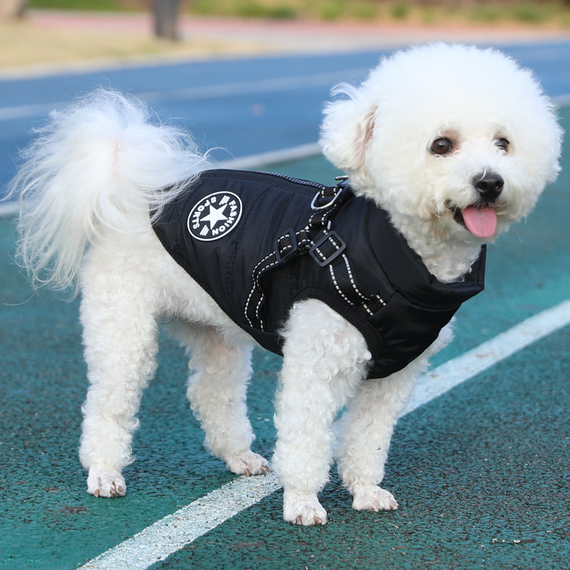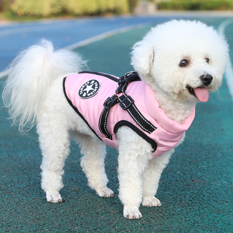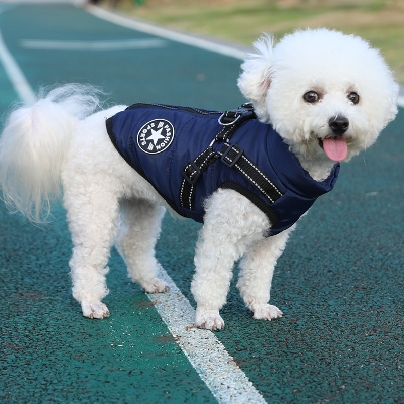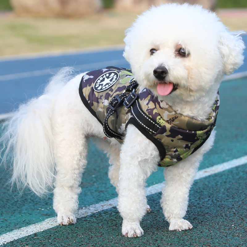제조업체 애완 동물 개 개 의류 겨울 두꺼운 크로스 보더 새로운 개 면화 의류 가슴과 등 통합 면 조끼 두 다리 면 의류스토어 가기