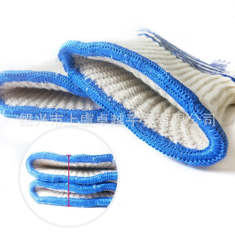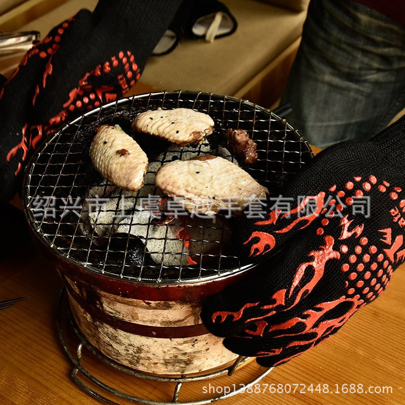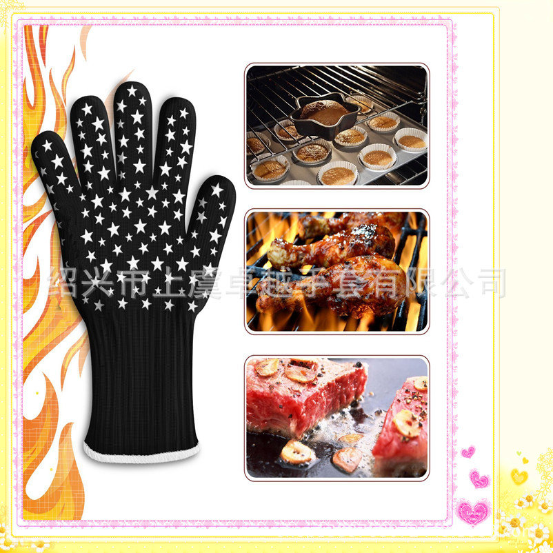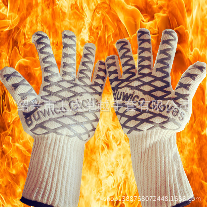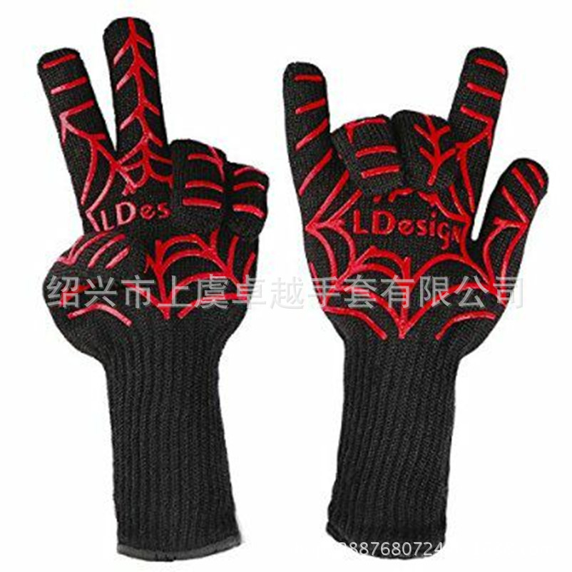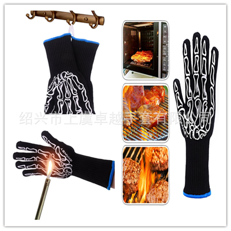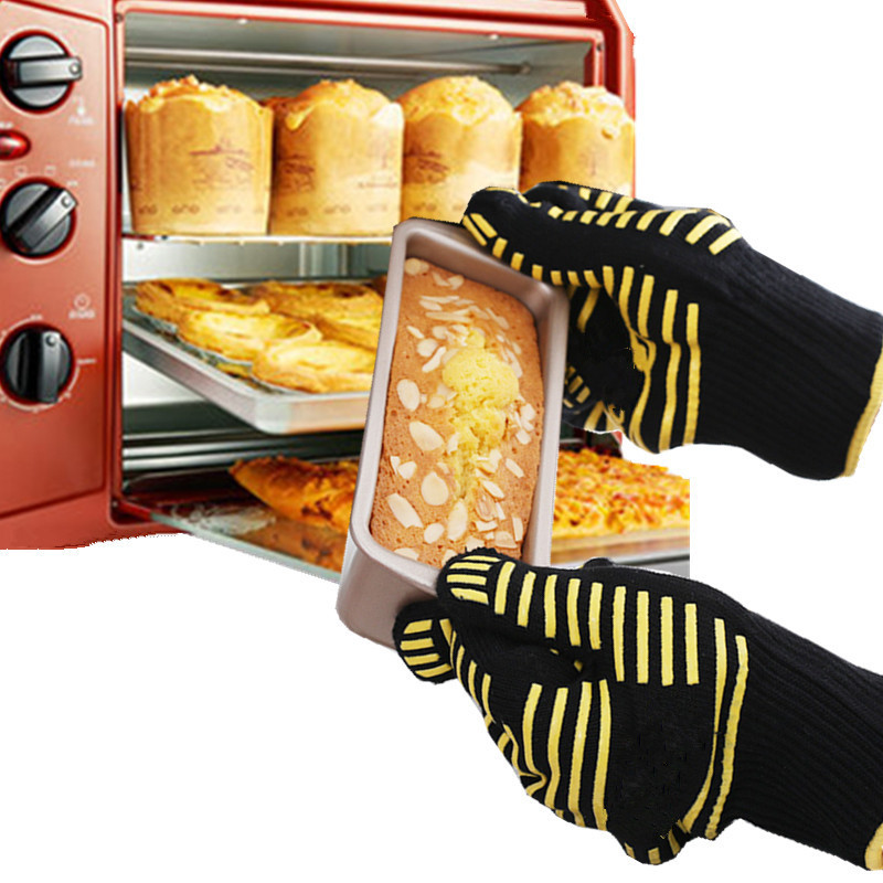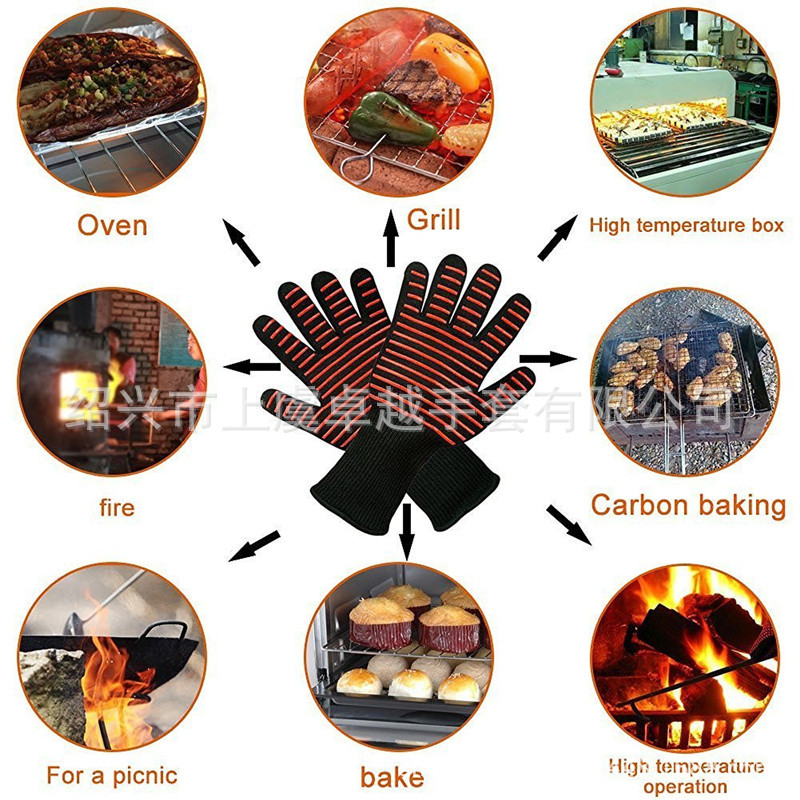 产品介绍:                                    品名;耐高温烤箱手套 材质外                        层棉纱,内层棉,                                                            最高耐热: 500摄氏度(瞬间温度)         用途:耐高温手套是在高温环境下使用的特种防高温手套,根据手部接触的温度可选择不同的耐高温手套,极高温混合化纤五指手套,手掌和食指耐磨硅胶层设计;适用烧烤,烤箱,微波炉,电磁炉!可定防割工业也可以使用产品可根据客户要求定做。                 产品特点:这种手套采用芳纶1313内层棉纤维结构,故同是提供优良的抗热防阻燃性能。手套有不同的样式,长度可以按照客户指定的长度设计,满足不同的客户群体需要。此外,这种手套还可以清洗,以延长手套使用寿命,并且不会降低性能。