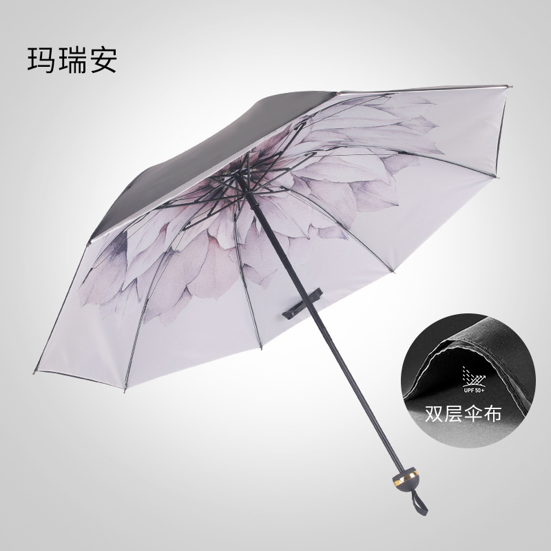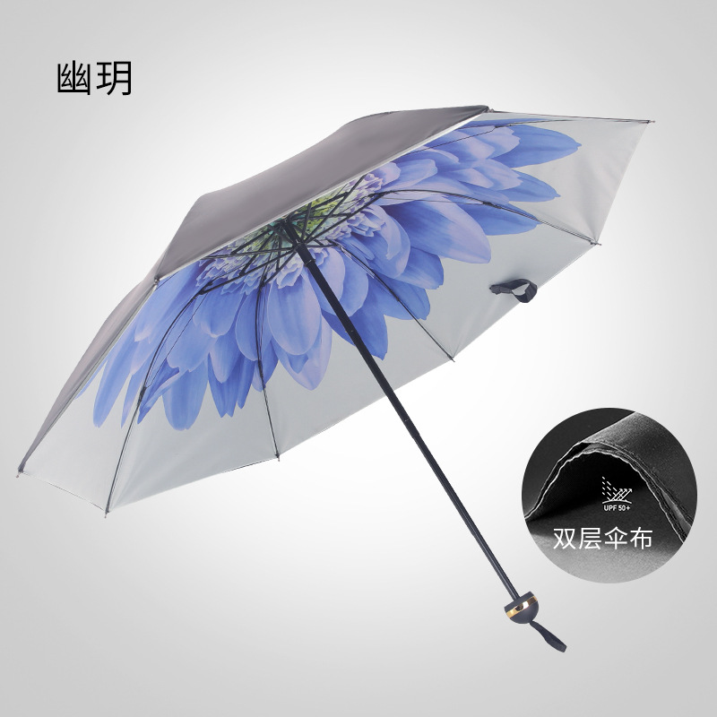우산 도매 양산 우산 3 개 접는 검정 고무 선 스크린 UV 태양 우산 비 이중 사용 여성 헤어 세대스토어 가기