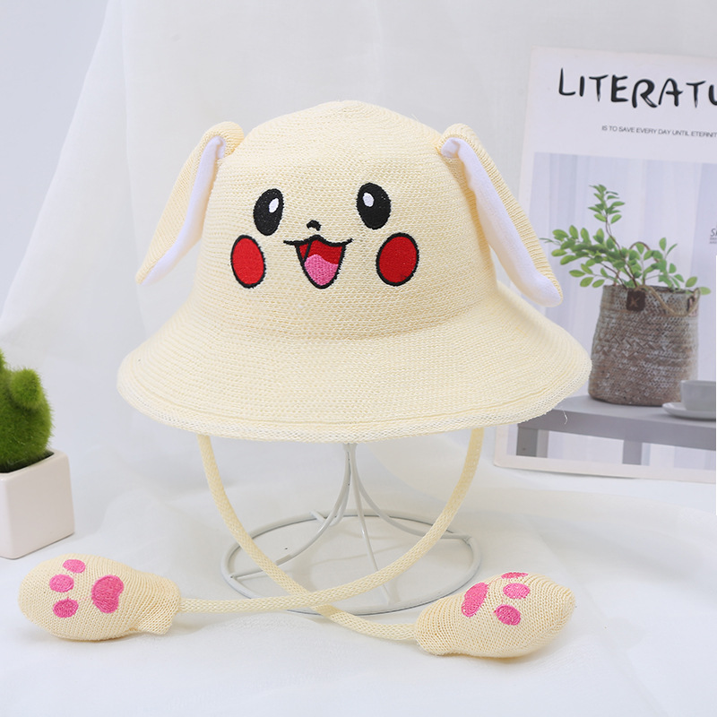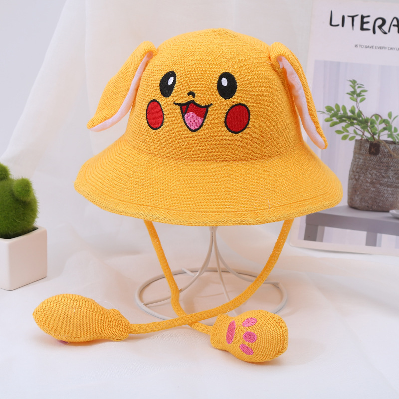 귀가 움직이는 어린이용 피카츄 어부 모자, 봄 여름 남아 여아 니트 자외선 차단 모자, 움직이는 캐릭터 모자