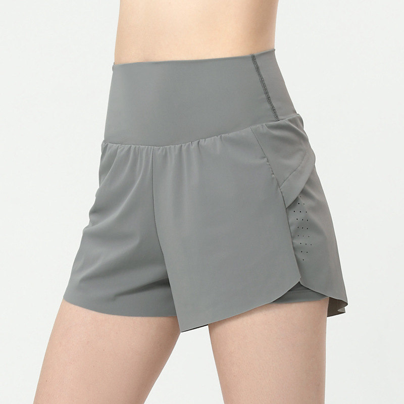크로스 보더 가짜 투피스 스포츠 반바지 여성용 러닝 요가 바지 하이 웨이스트 탄성 속건 피트니스 안티 러닝 느슨한 불타는 구멍