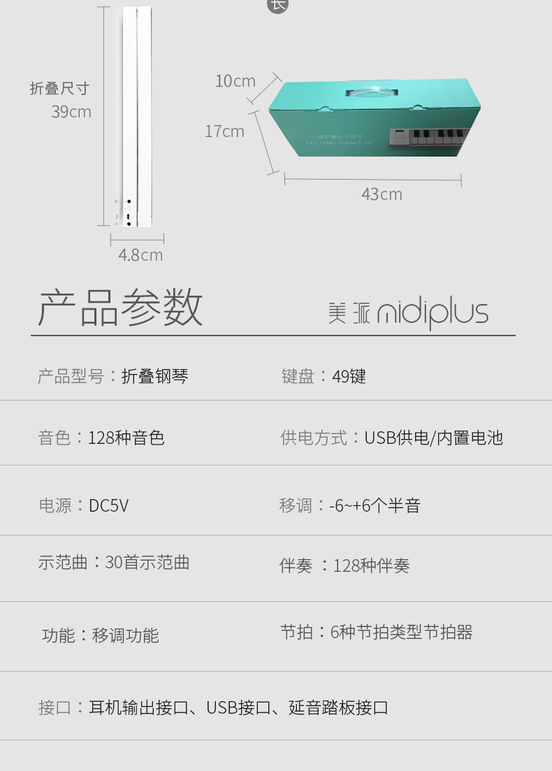 MIDIPLUS 접이식 전자 피아노 49 키보드 초보자 휴대용 어린이 전자 피아노
