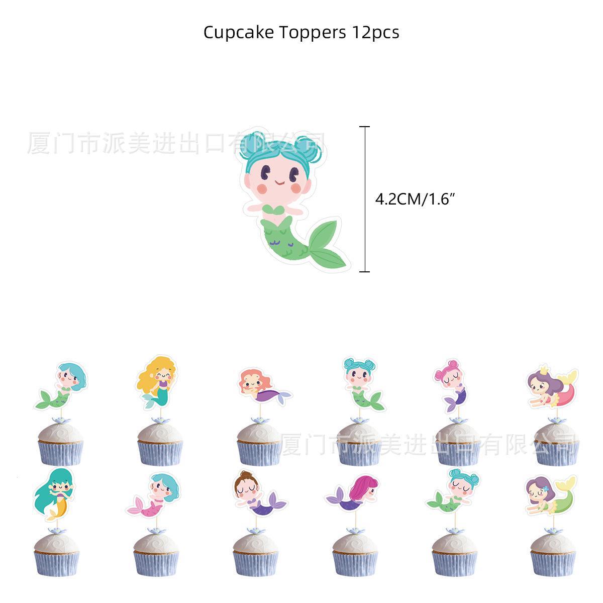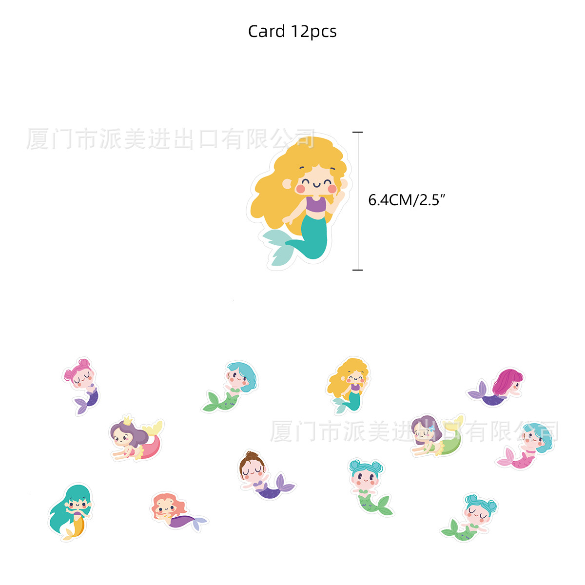 套装4:3个20cm灯笼(浅紫+粉色+浅蓝)+12个美人鱼卡片+1条字母拉旗+1条2米24片纸串(金卡)+1个蛋糕插排+12个蛋糕插旗+2个鱼尾铝膜+16个乳胶气球