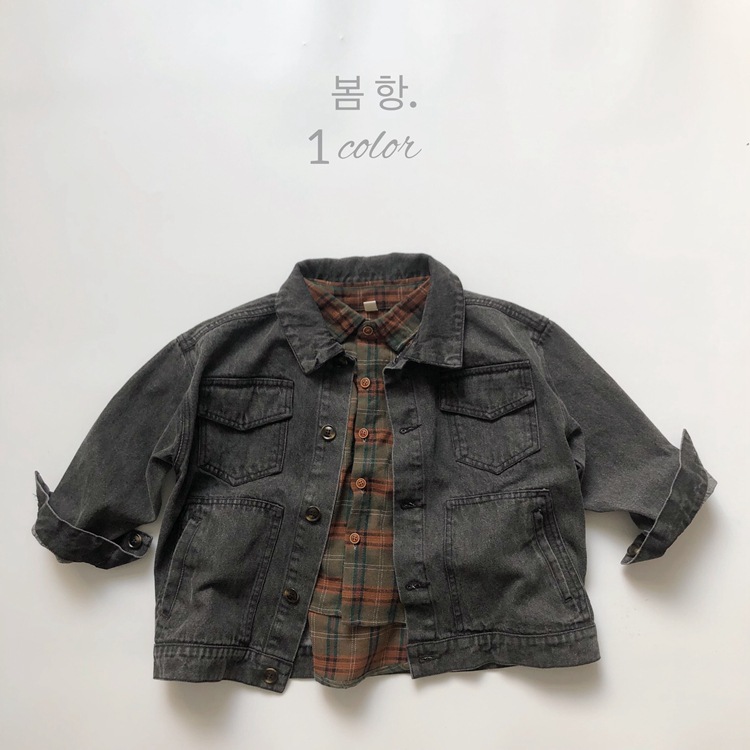 Risen 스타일 빈티지 데님 코트 한국 어린이 의류 봄과 가을 새로운 소년과 소녀 캐주얼 편안한 카디건 탑스토어 가기