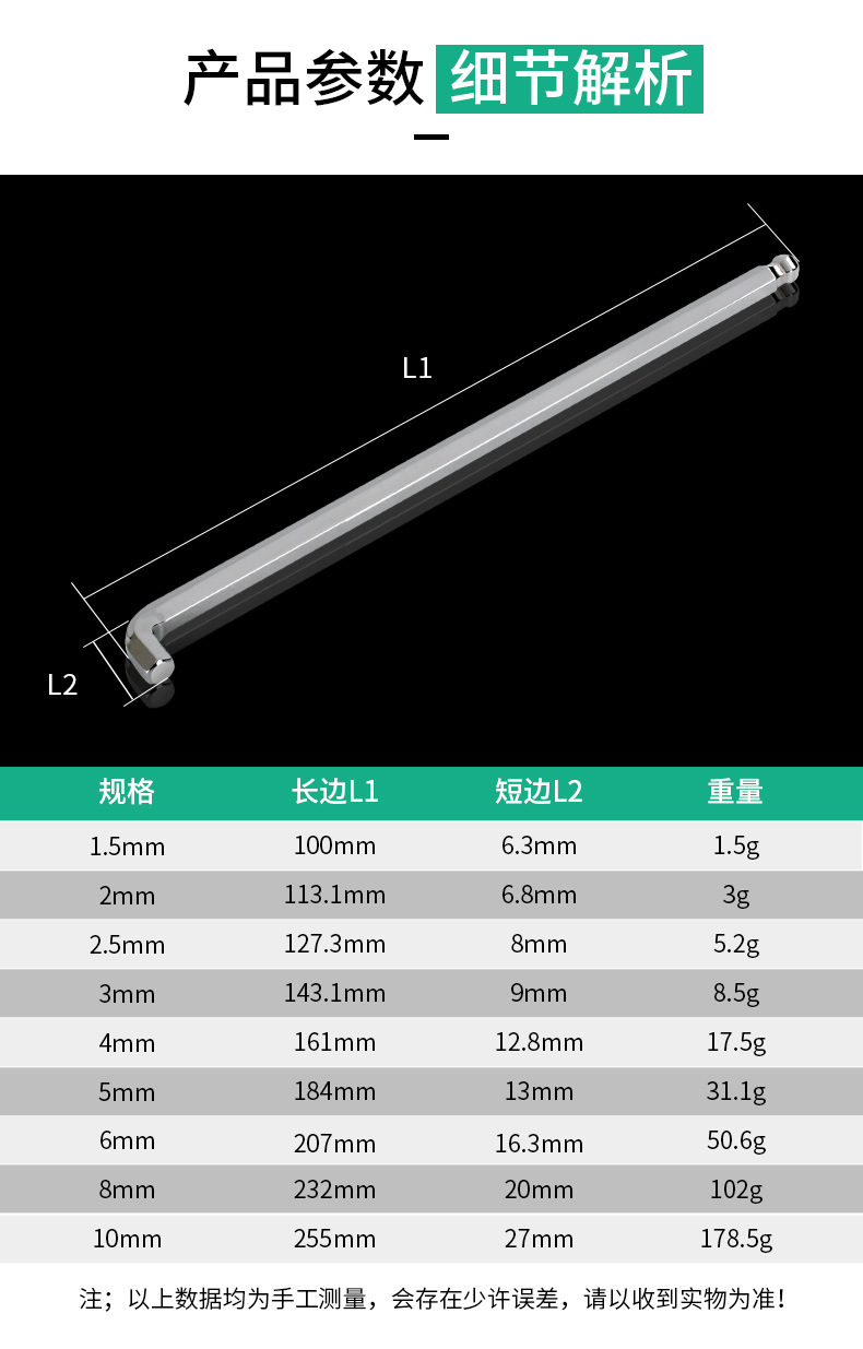 육각형 렌치 세트 S2 짧은 머리 연장 볼 헤드 단일 내부 6 각도 렌치 1.5mm 2mm 2.5mm