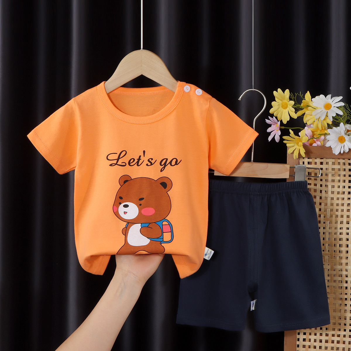 어린이 반팔 세트 여름 면화 소년과 소녀 의류 잠옷 투피스 아기 티셔츠 의류 아동 의류 도매