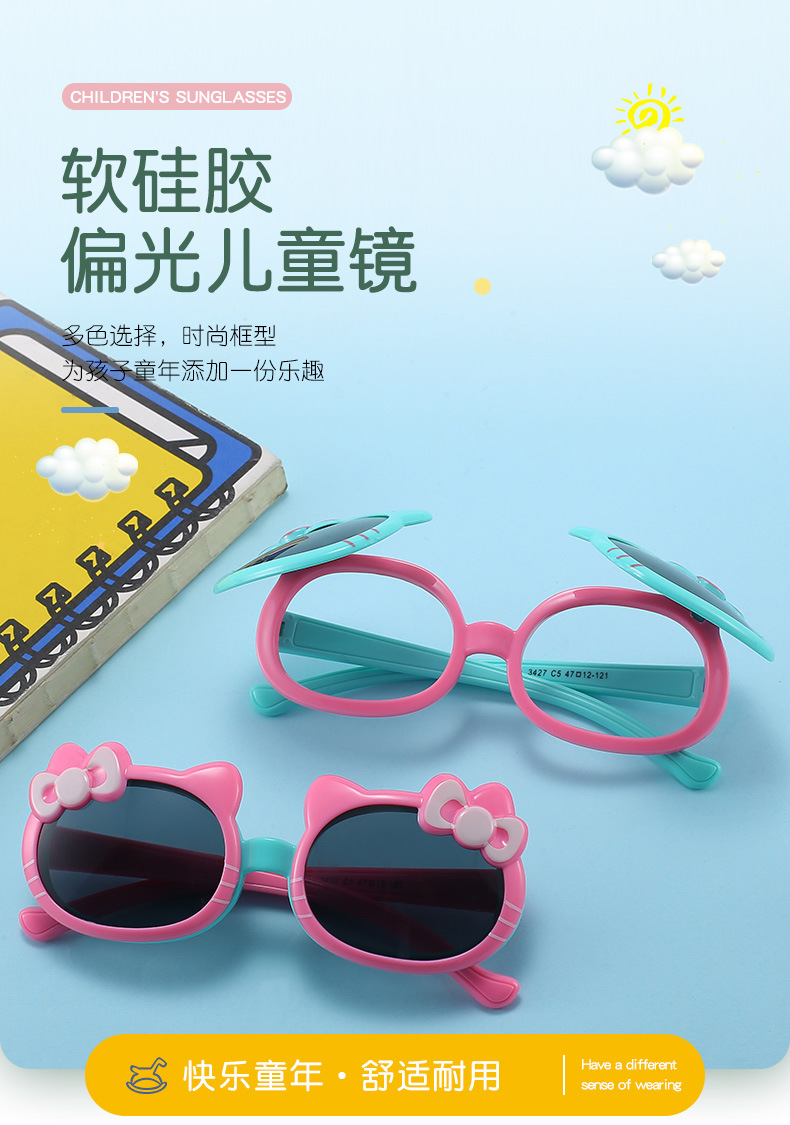 새로운 어린이 만화 플립 선글라스 아기 선 스크린 편광 선글라스 여성 귀여운 고양이 한국 안경 도매스토어 가기