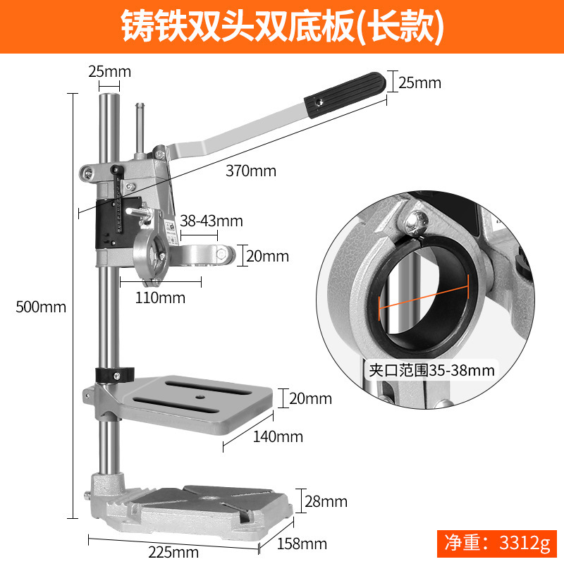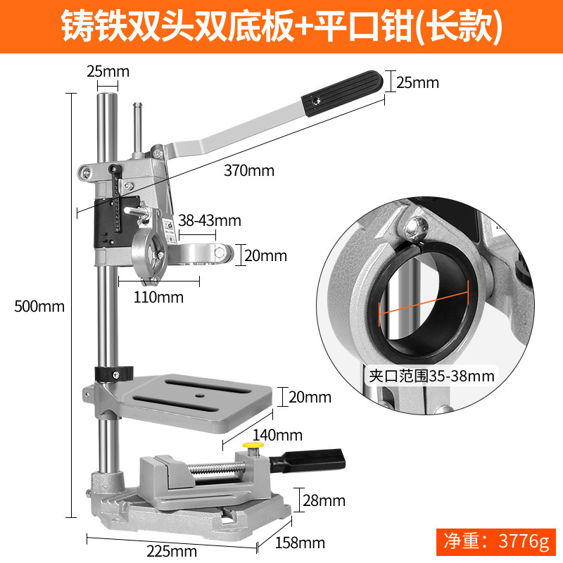 • [알루미늄 더블 헤드] 전동 드릴 로터리 벤치 드릴 더블 브라켓 [바이스 포함]]