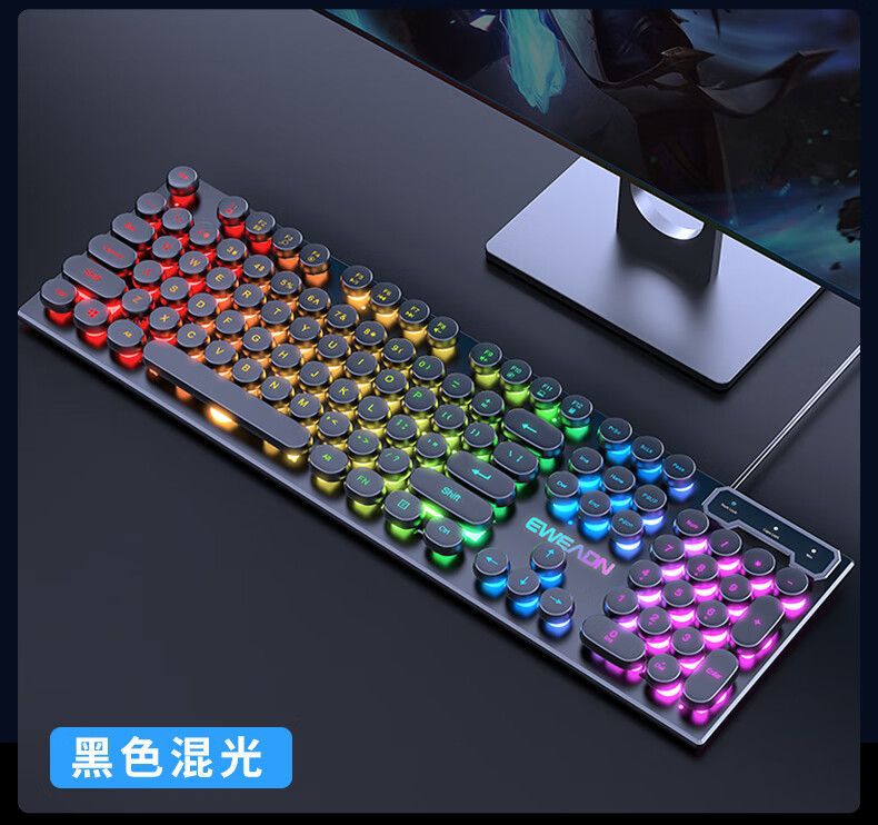 Forerunner의 실제 기계적 느낌 펑크 키보드와 마우스 세트 레트로 라운드 키 유선 데스크탑 컴퓨터 사무실 도매