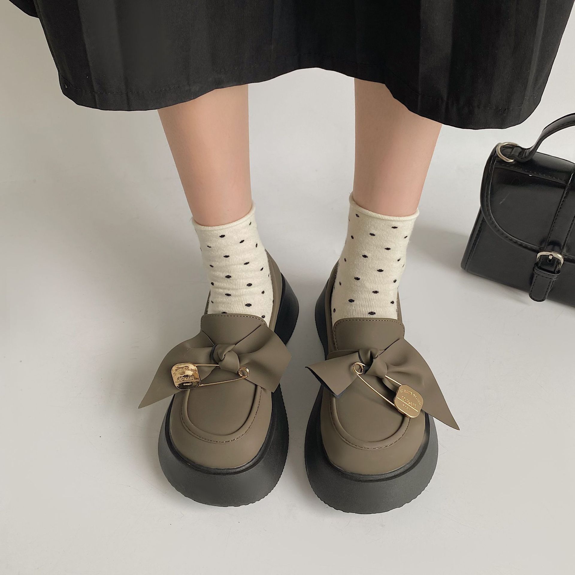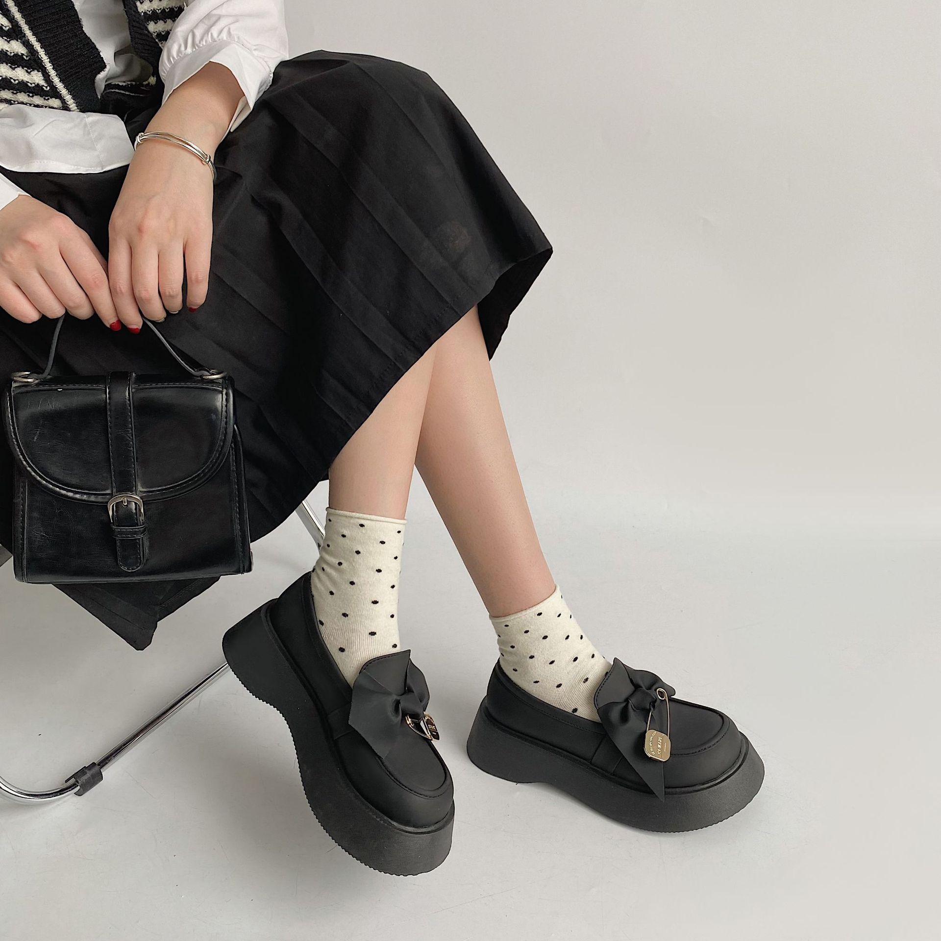 블랙 레트로 영국 스타일 작은 가죽 신발 여성의 봄/여름 2022 새로운 간단한 기본 발 세트 라운드 발가락 패션 싱글 레이어 신발스토어 가기