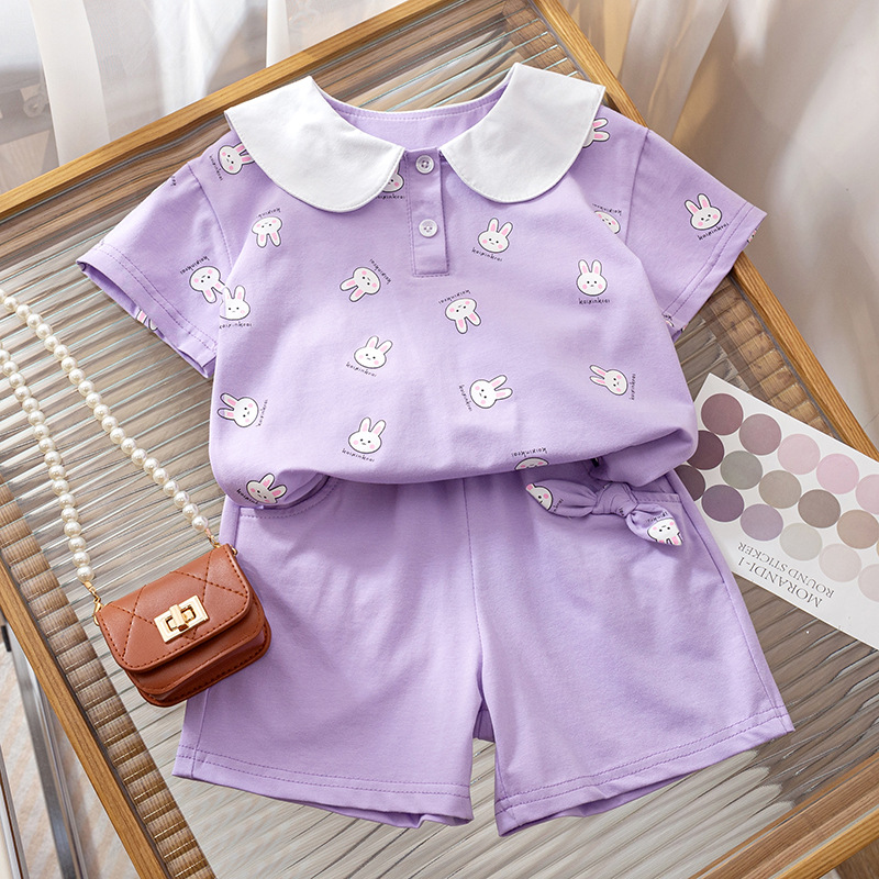 여아 반팔 세트 2023 새로운 어린이 여름 만화 캐주얼 여름 반바지 아기 옷 한국 아동복스토어 가기