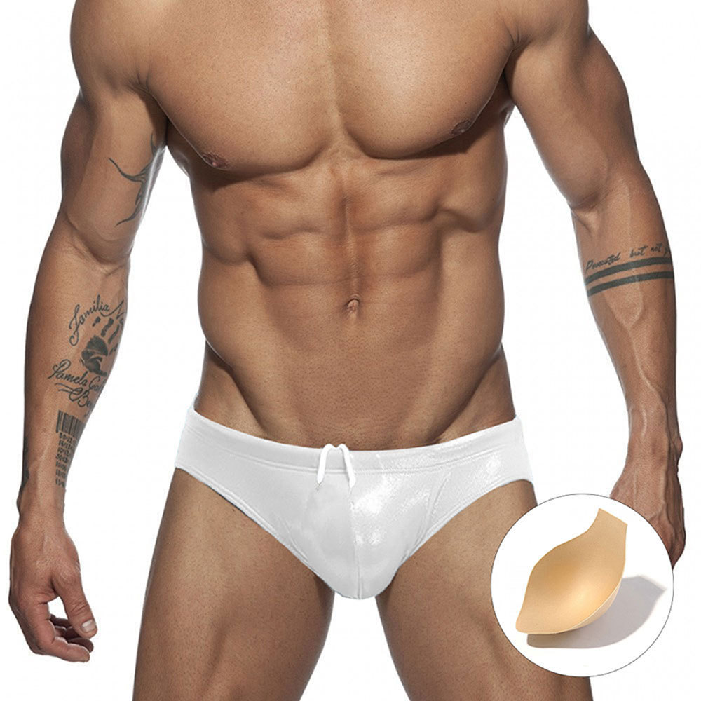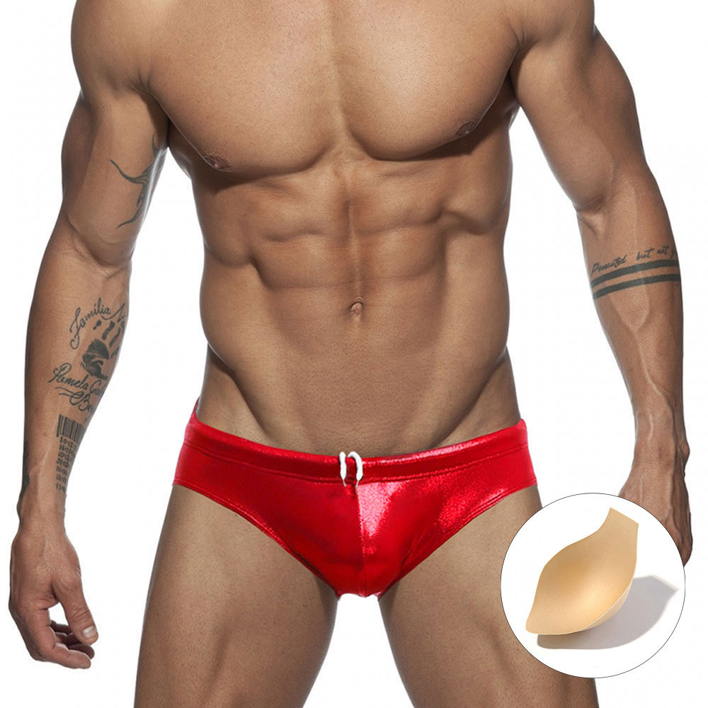 UXH 남성용 모조 가죽 스팽글 컵 삼각형 수영 트렁크 U 볼록한 입체 성능 활주로 브리프 비치 트라이앵글 남성스토어 가기
