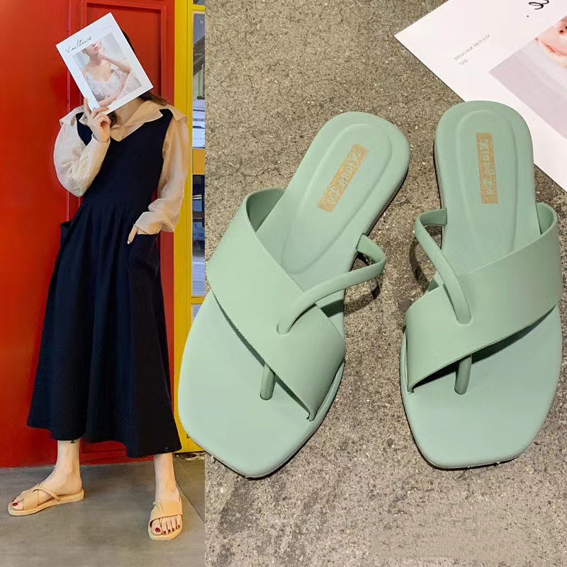 봄 2020 한국식 평면 캔디 컬러 비치 슬리퍼 학생들을위한 패션 캐주얼 슬리퍼 도매스토어 가기