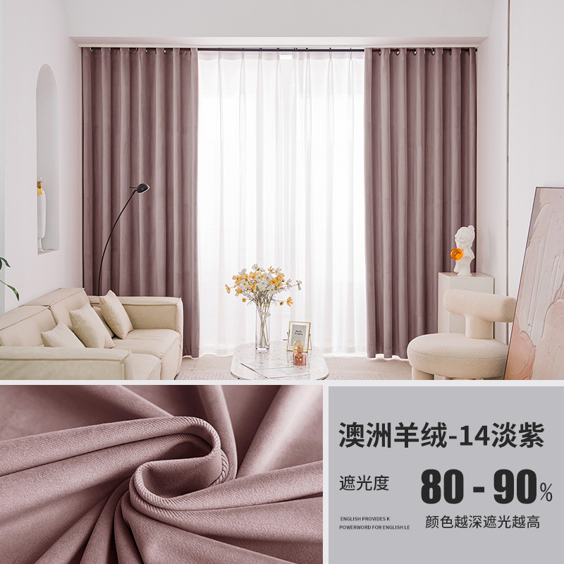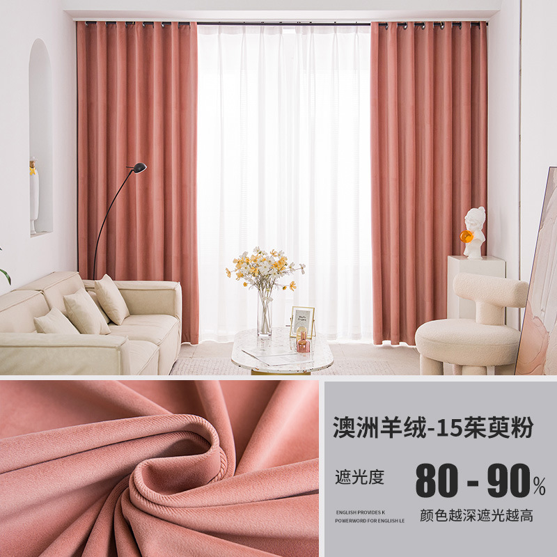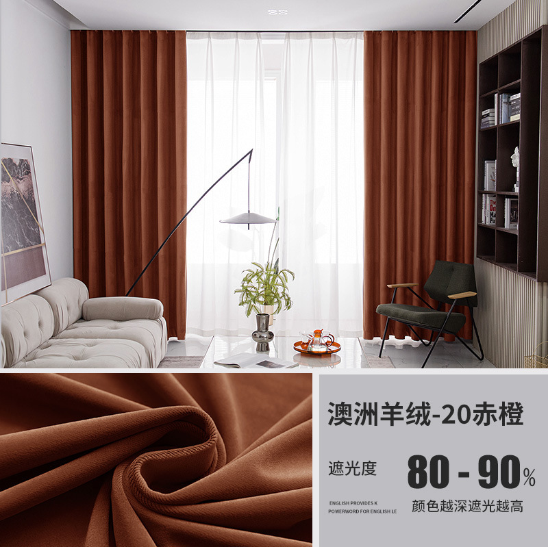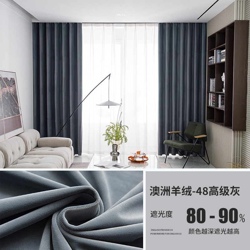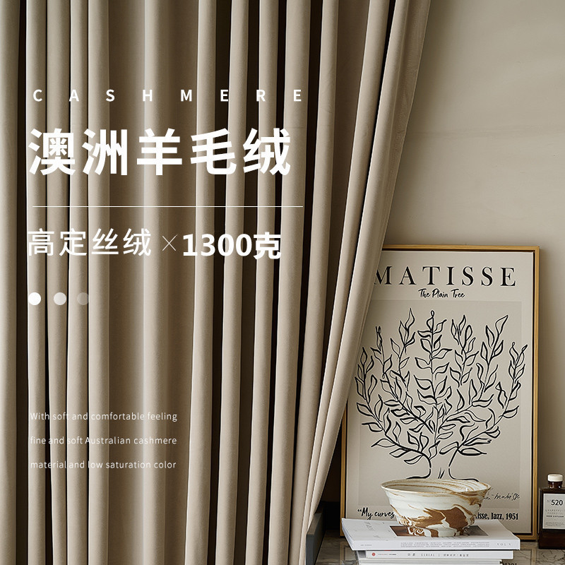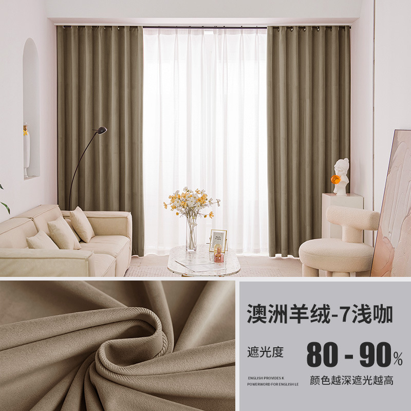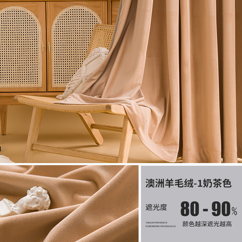 가벼운 럭셔리 919 호주 울 봉제 차양 커튼 패브릭 벨벳 밀크 티 컬러 양털 커튼 완성 된 거실 침실