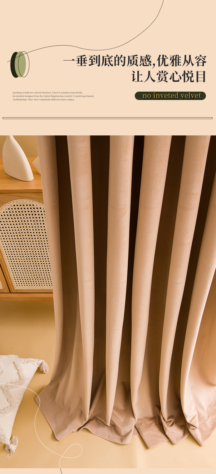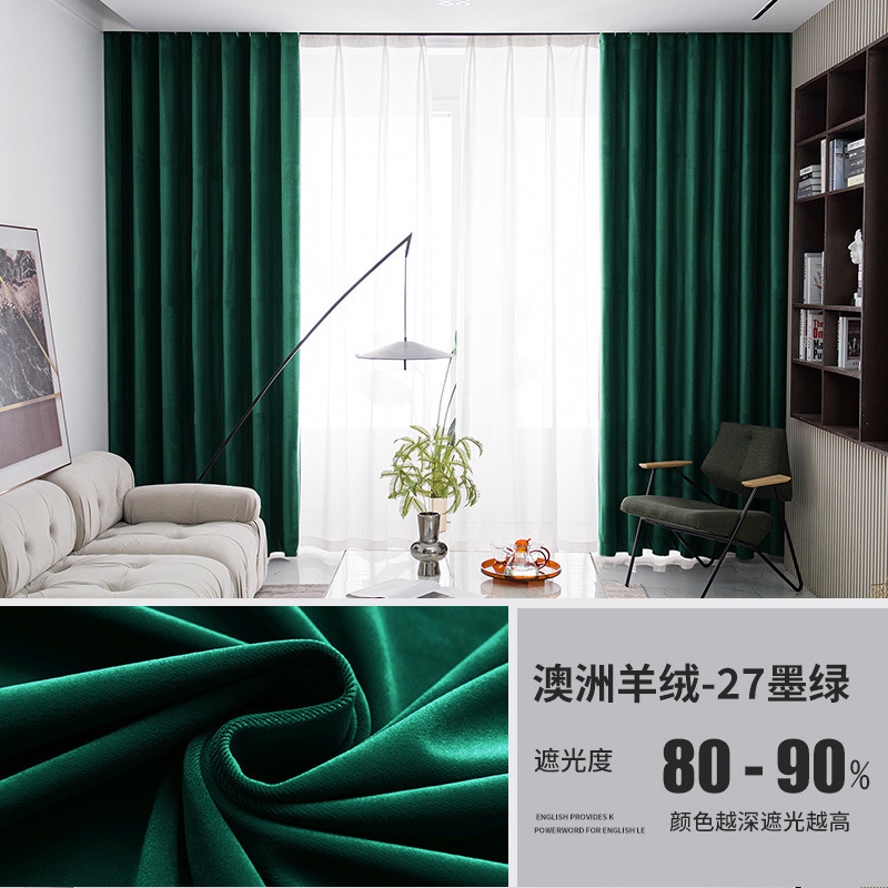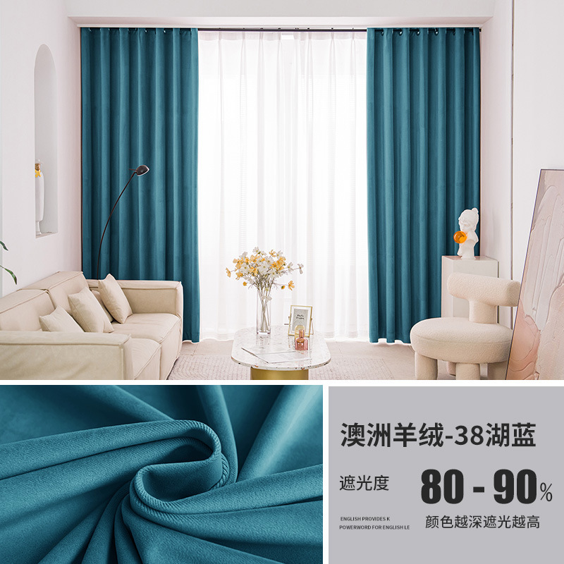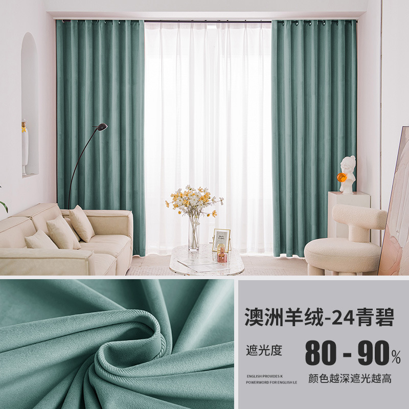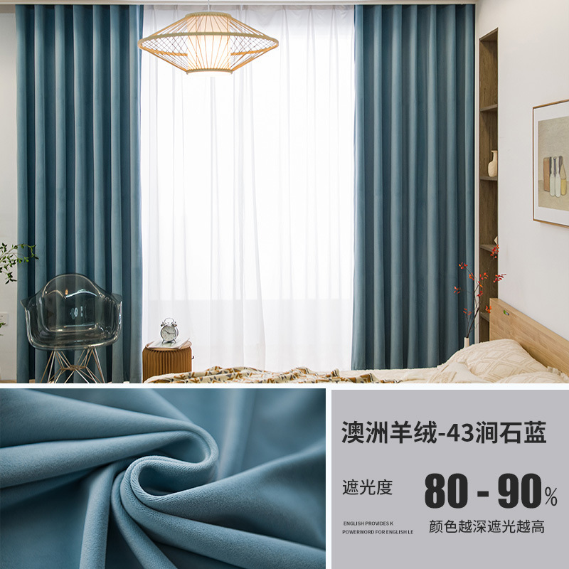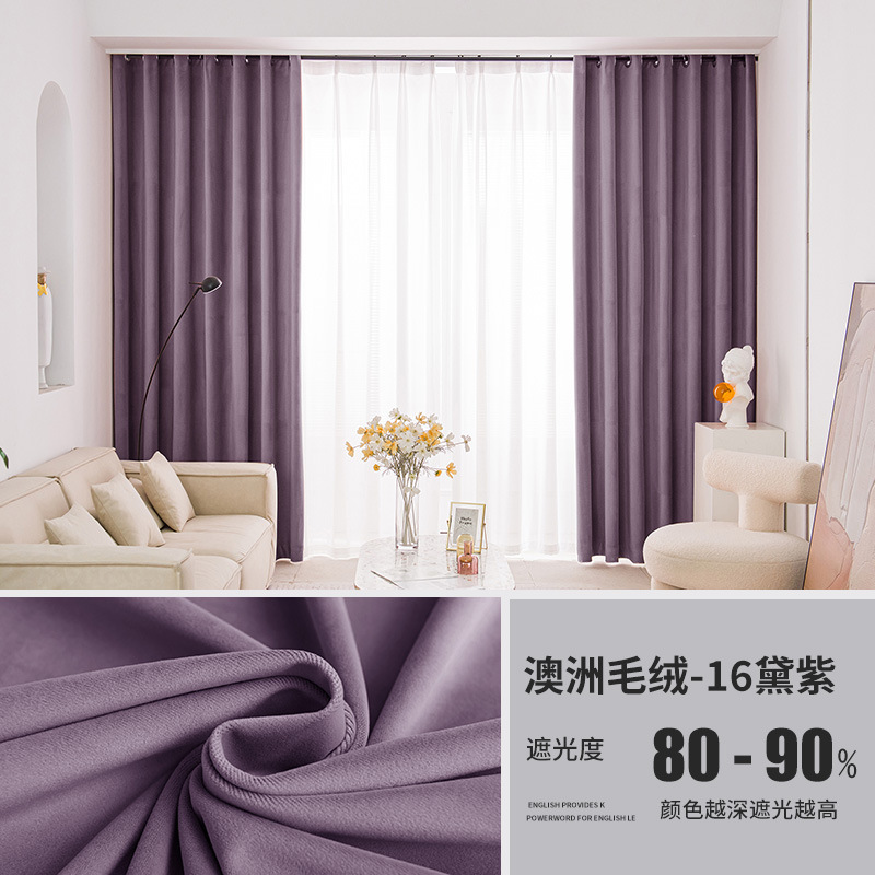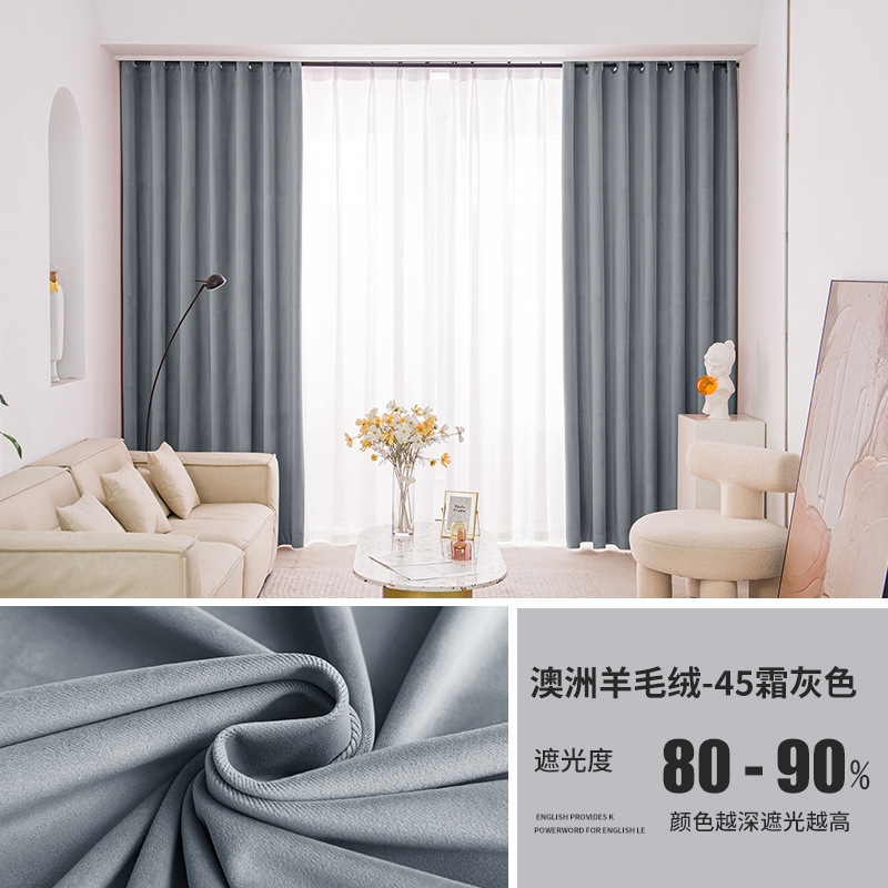 가벼운 럭셔리 919 호주 울 봉제 차양 커튼 패브릭 벨벳 밀크 티 컬러 양털 커튼 완성 된 거실 침실