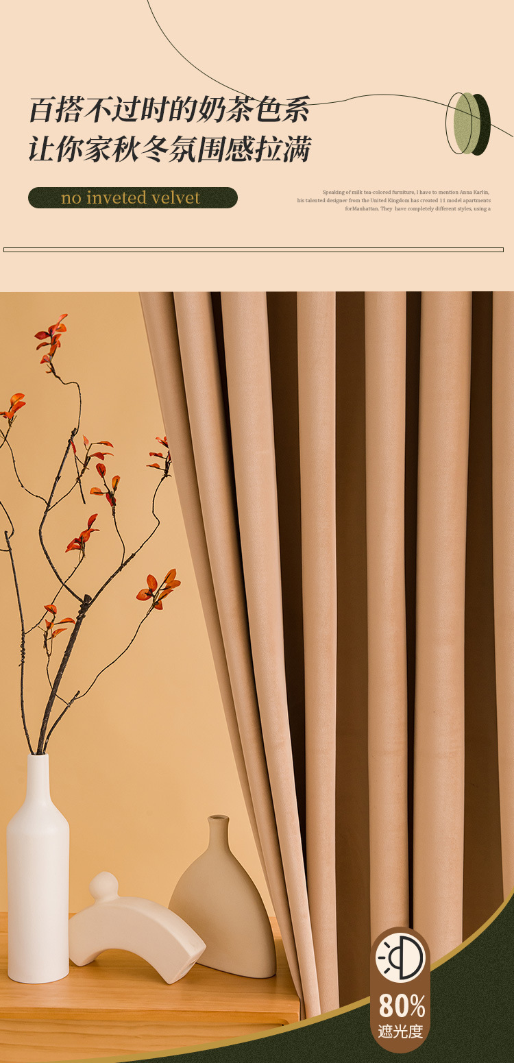 가벼운 럭셔리 919 호주 울 봉제 차양 커튼 패브릭 벨벳 밀크 티 컬러 양털 커튼 완성 된 거실 침실스토어 가기