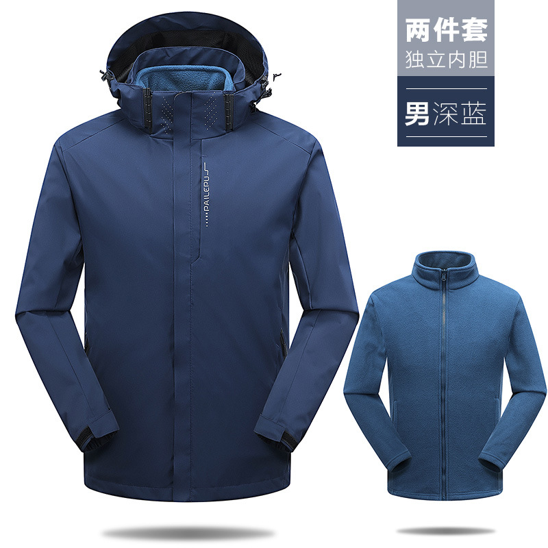 남성용 가을 겨울용 플리스 안감 두꺼운 아웃도어 등산복 여성용 방풍 방수 3-in-1 탈부착 가능 자켓 남성용스토어 가기