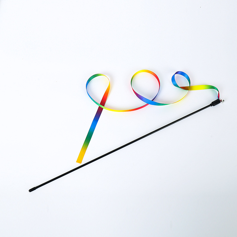 새로운 슈퍼 긴 다채로운 무지개 리본 재미있는 고양이 스틱 고양이 벨 고양이 플레이 대화 형 장난감 요정 재미있는 고양이 막대스토어 가기