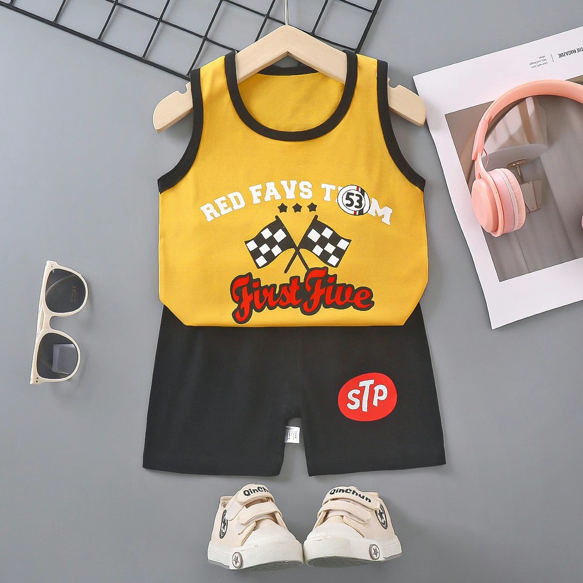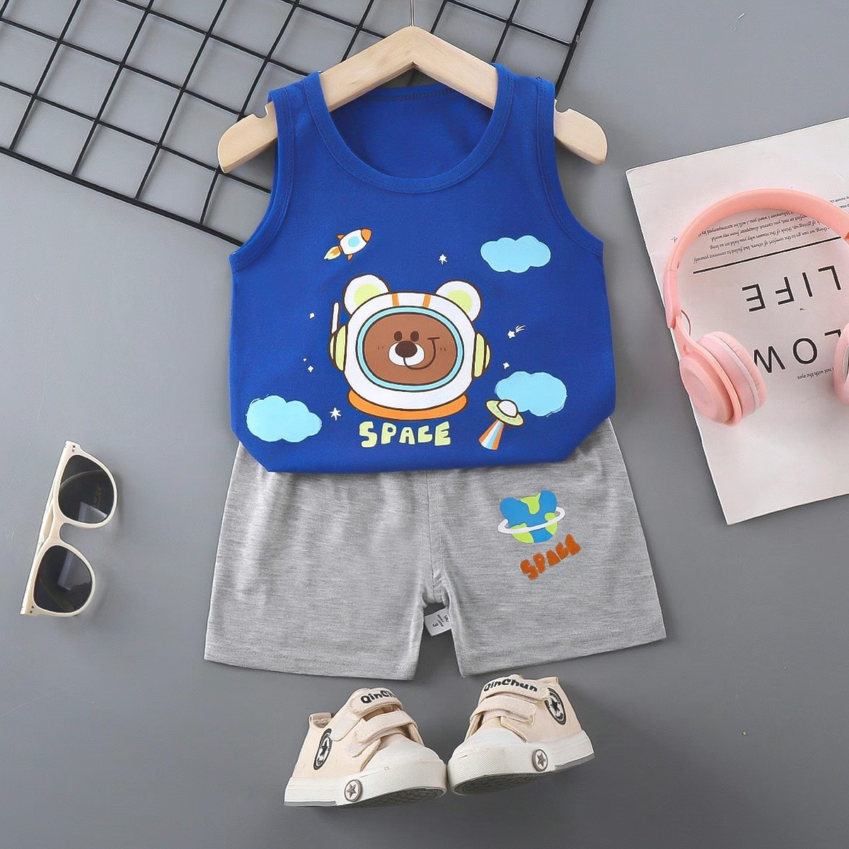 어린이 조끼 세트 여름 면 새로운 여아 반바지 옷 아기 한국 소년 민소매 세트 아동 의류스토어 가기