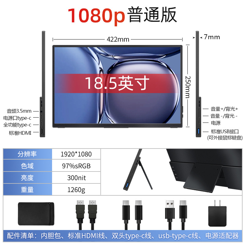 국경 간 대외 무역 10/ 18.5inch 휴대용 디스플레이 컴퓨터 게임 e-스포츠 휴대 전화 스위치/ps5 확장 화면스토어 가기