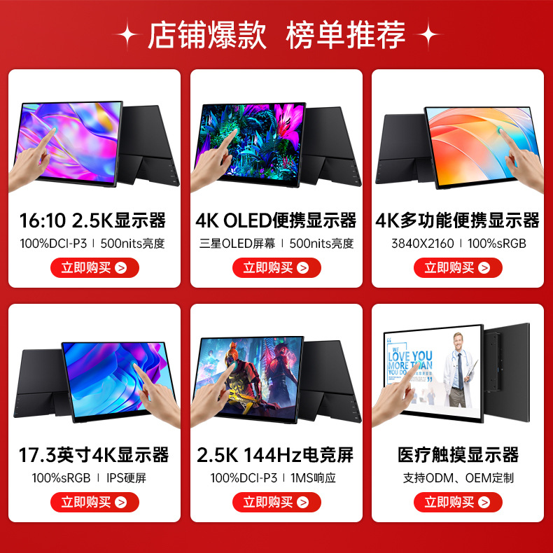 电池便携式显示器高清 便携式显示器触摸屏4K便携式显示器便携显示器16寸显示器便携式OLED 17寸便携显示器