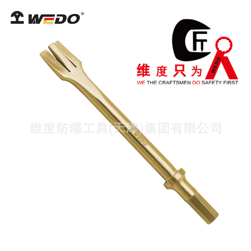 我公司的防爆工具是经过300-2500T的大型摩擦压力机 次性模锻而成,生产工艺先进。防爆工具分为铝青铜和铍青铜。铍青铜工具属 家ⅡC产品,在浓度21%的氢气中作业不引爆气体;铝青铜工具属 家ⅡB产品,在浓度7.8%的乙烯气体中作业不引爆气体。因铍青铜材料磁性为零,所以铍青铜工具又称防磁工具,可在磁场环境安全作业。
