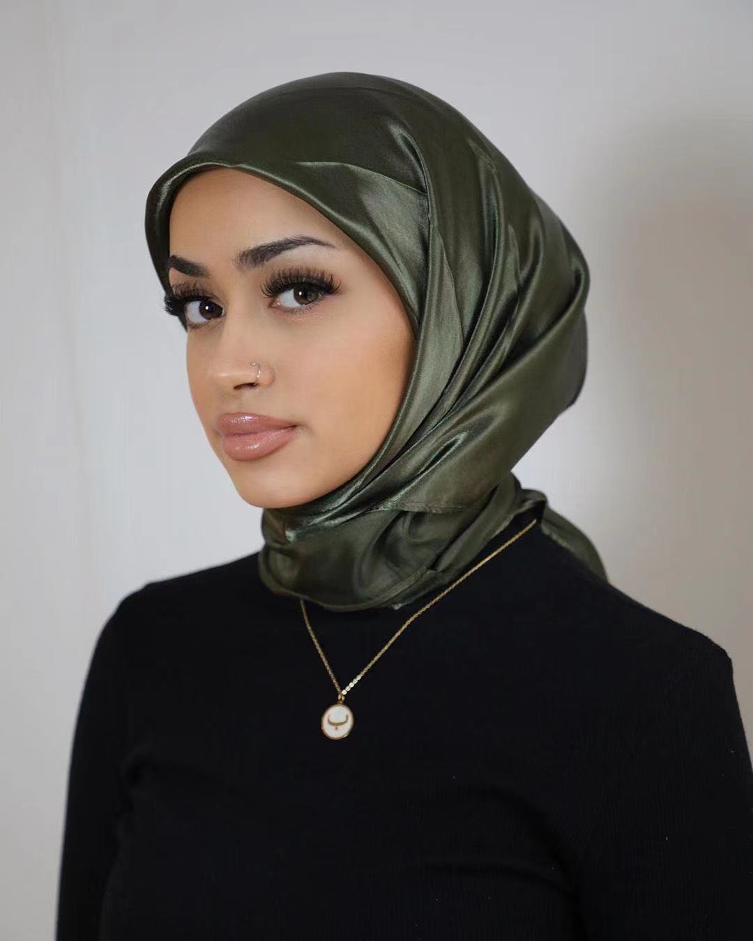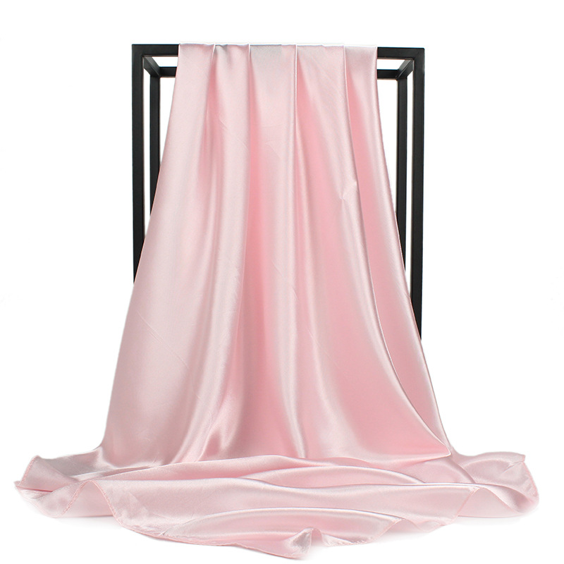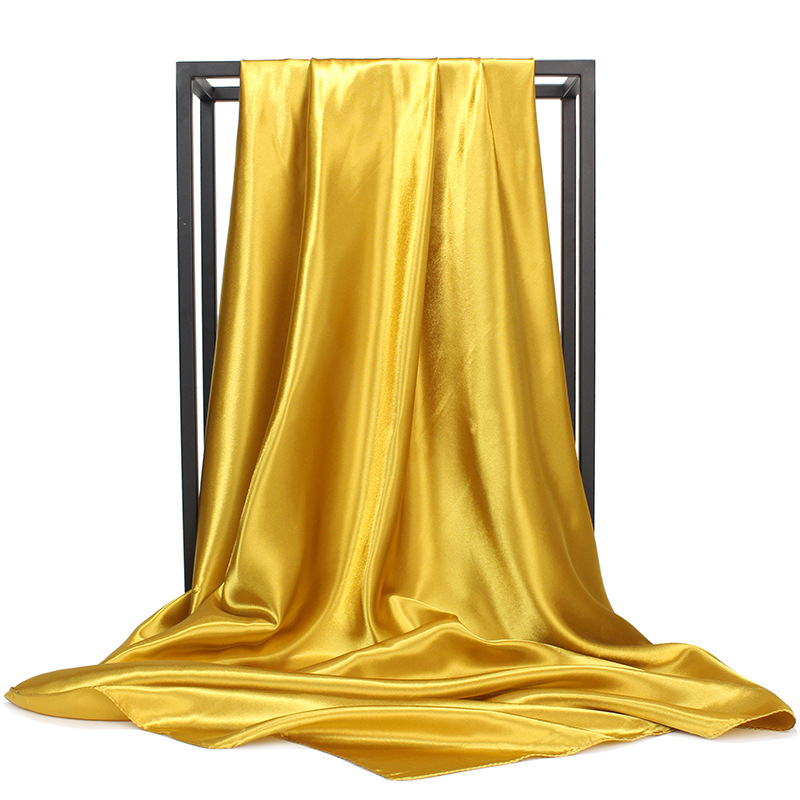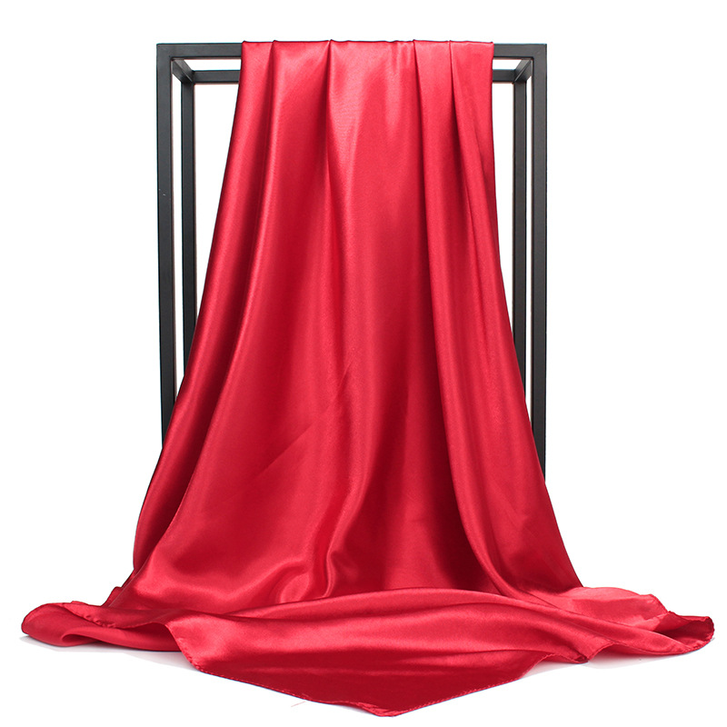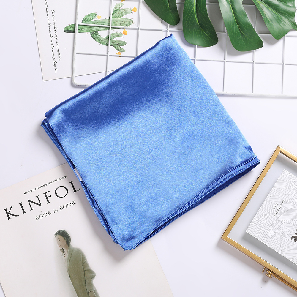 90*90cm大方巾缎面色丁丝巾女士围巾披肩,外贸纯色丝巾。
