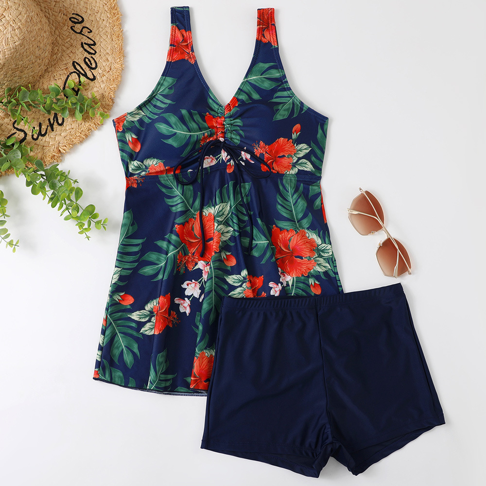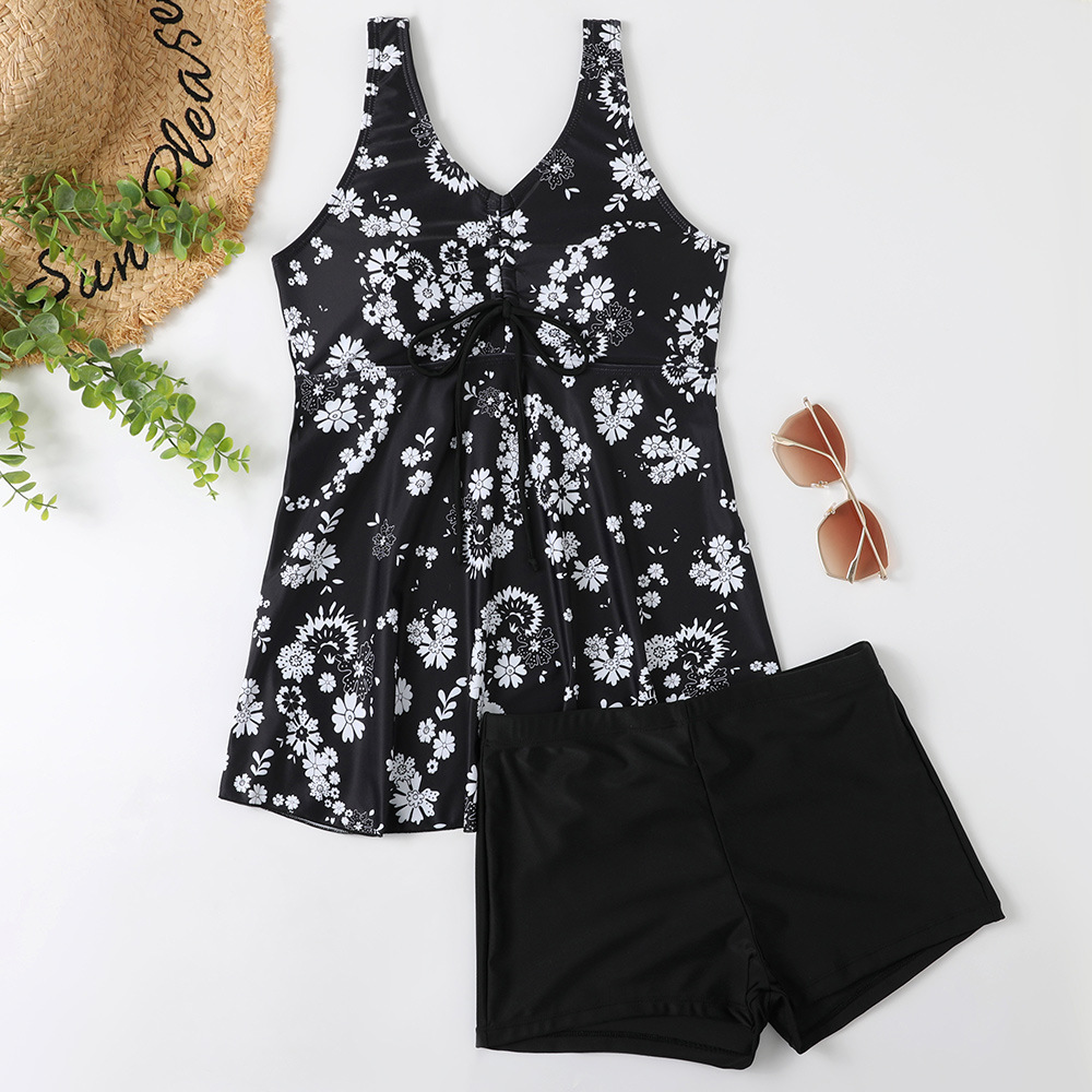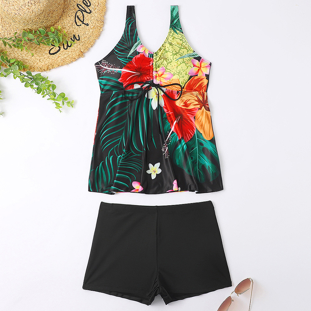 아마존 수영 원피스 플러스 사이즈 분할 새로운 수영복 단색 인쇄 배꼽 취재 보수적 인 섹시한 복서 여러 색상