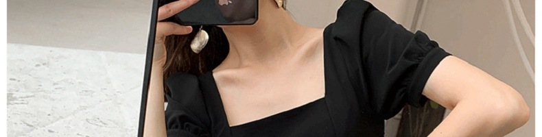 2025 여름 신상 레트로 허번 스타일 블랙 드레스 통통한 여성을 위한 허리 슬림핏 스퀘어 넥 원피스 여성 의류 수출용스토어 가기