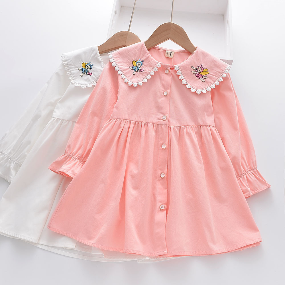 0126-38 2022 봄 새로운 레이스 꿀벌 수 놓은 옷깃 소녀의 긴 소매 면화 데님 스커트스토어 가기