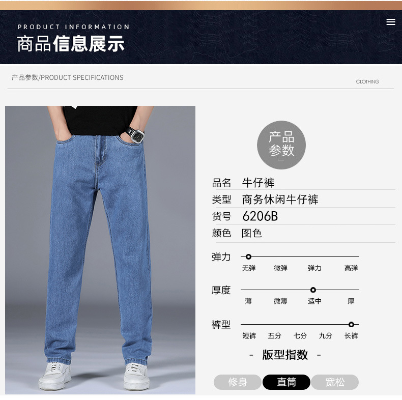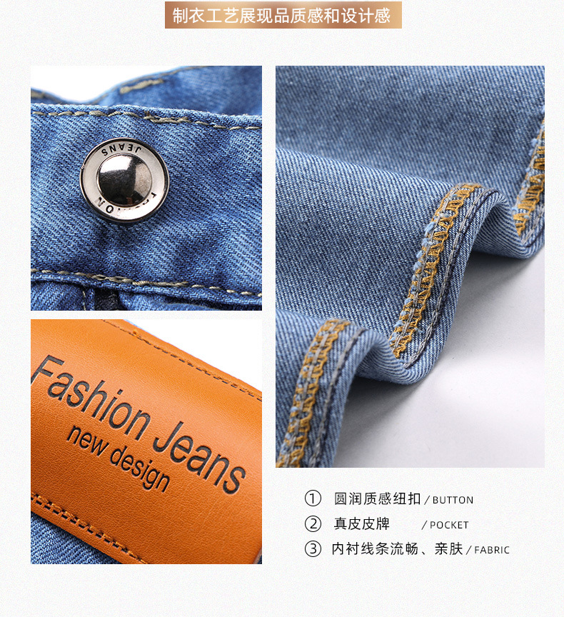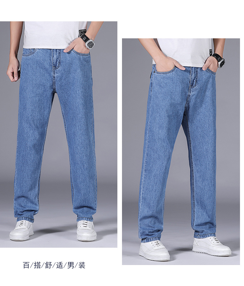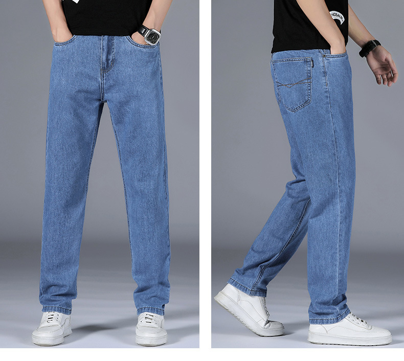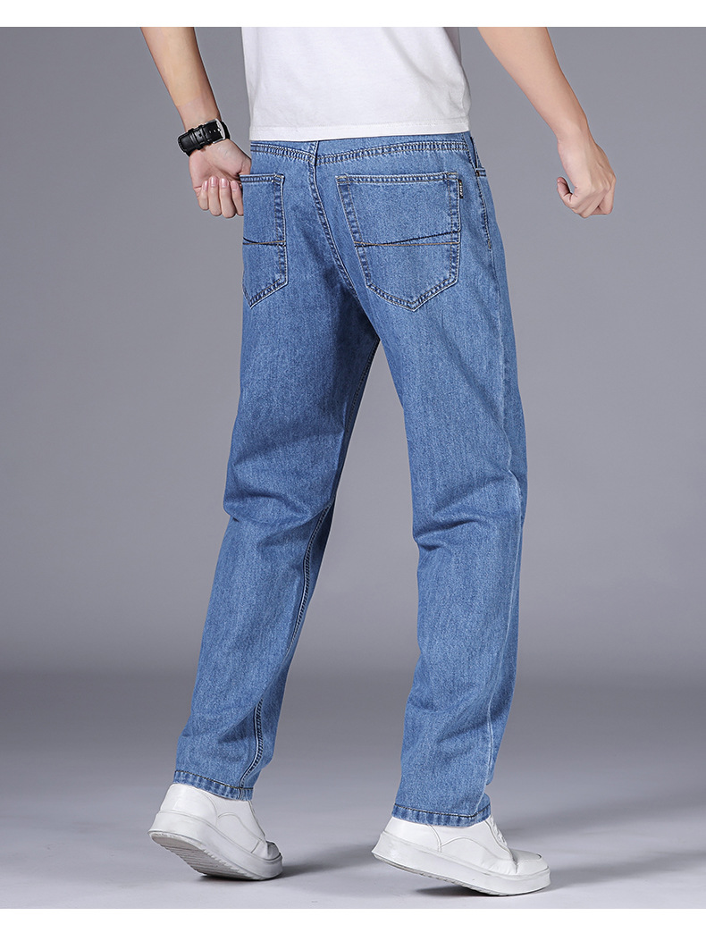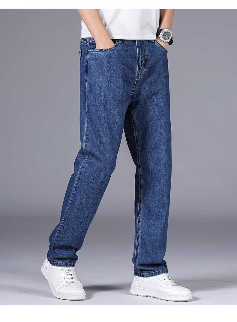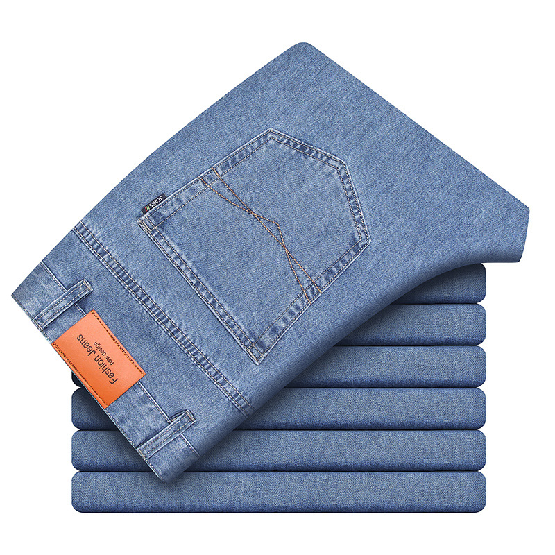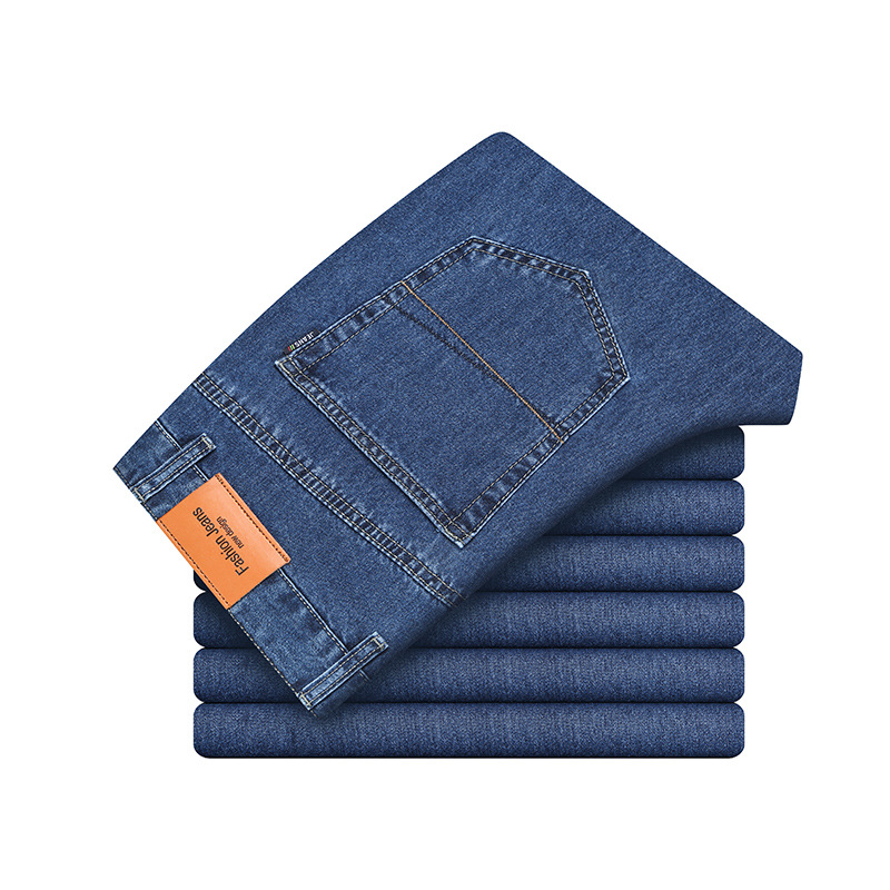 순수 코튼 청바지 남성 봄 여름 새로운 스타일 비즈니스 하이 웨이스트 스트레이트 남성 바지 중년 느슨한 캐주얼 바지 내마모성스토어 가기
