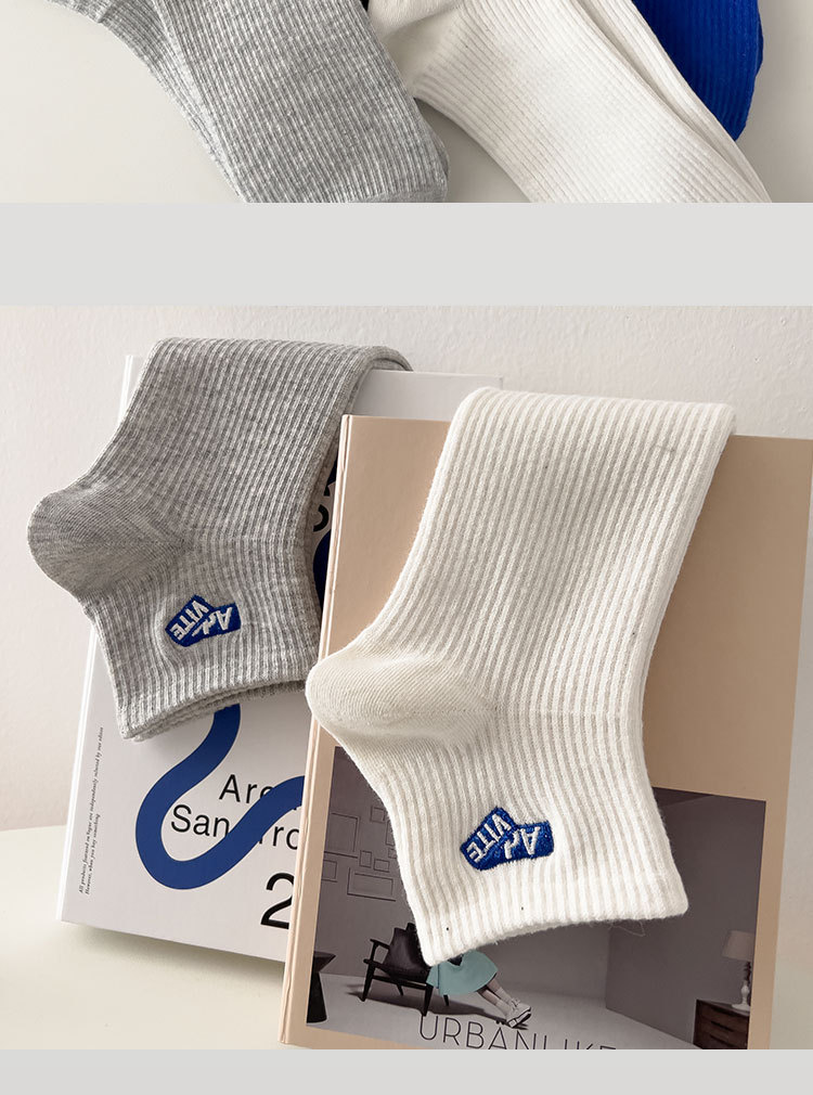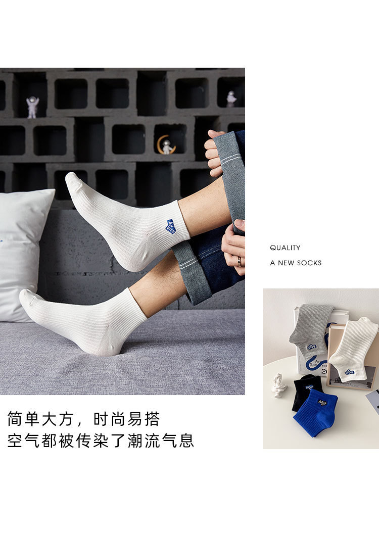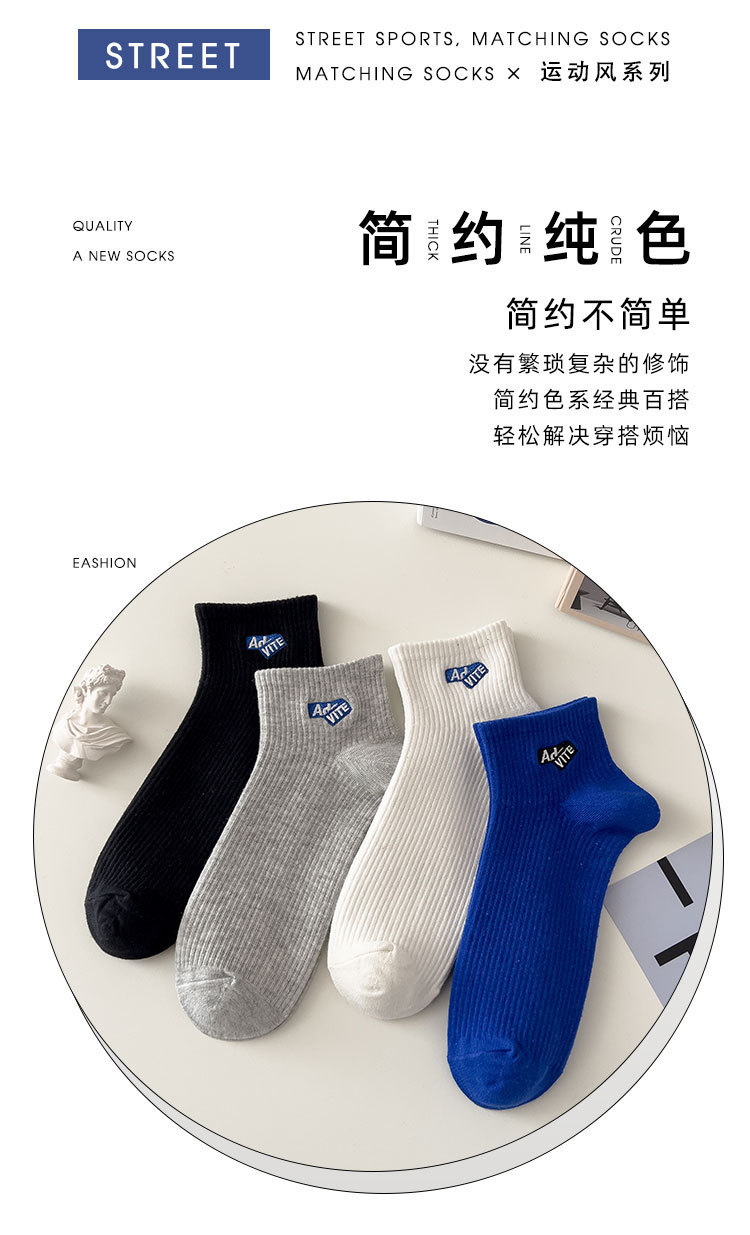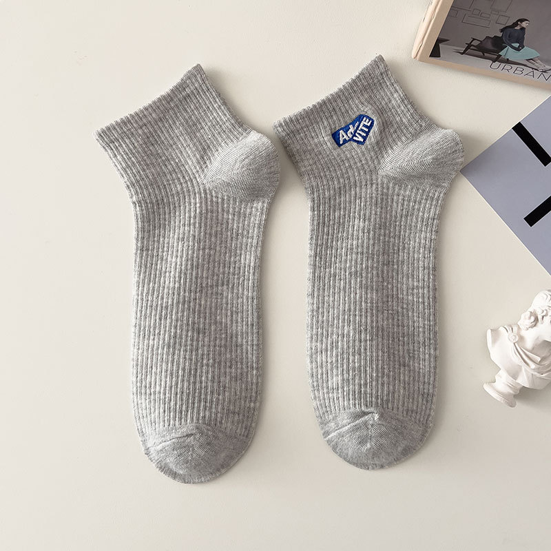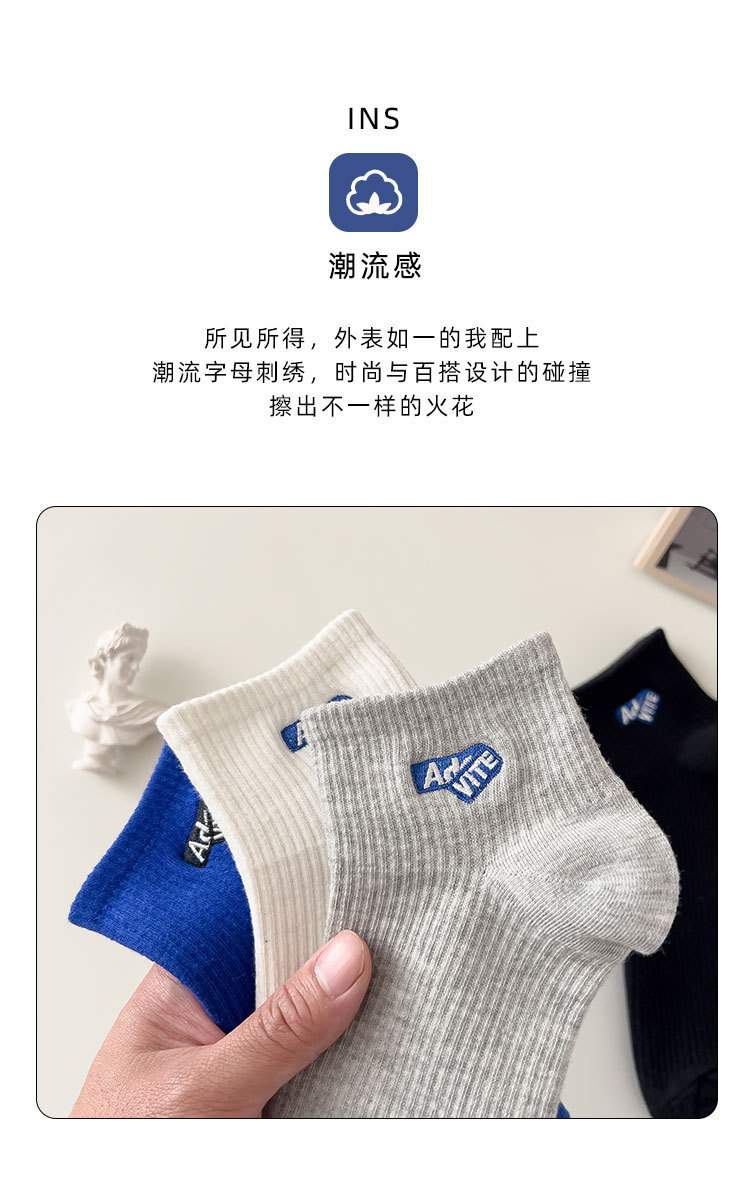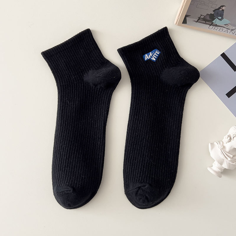 양말 남성용 짧은 양말 여름 순면 땀 흡수 통기성 스포츠 미드 양말 냄새 방지 모든 매치 자수 편지 유행 양말스토어 가기